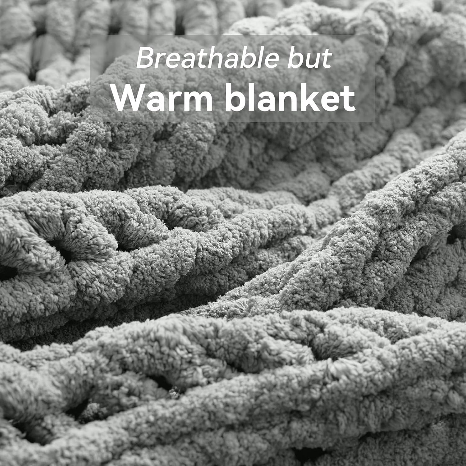 Chunky Knit Throw Blanket, 60''*80'' Knitted Throw Chenille Yarn for Bed Couch, Handmade Light Grey Crochet Big Thick Blanket, Machine Washable Cute Comfy Blanket for Home Decor