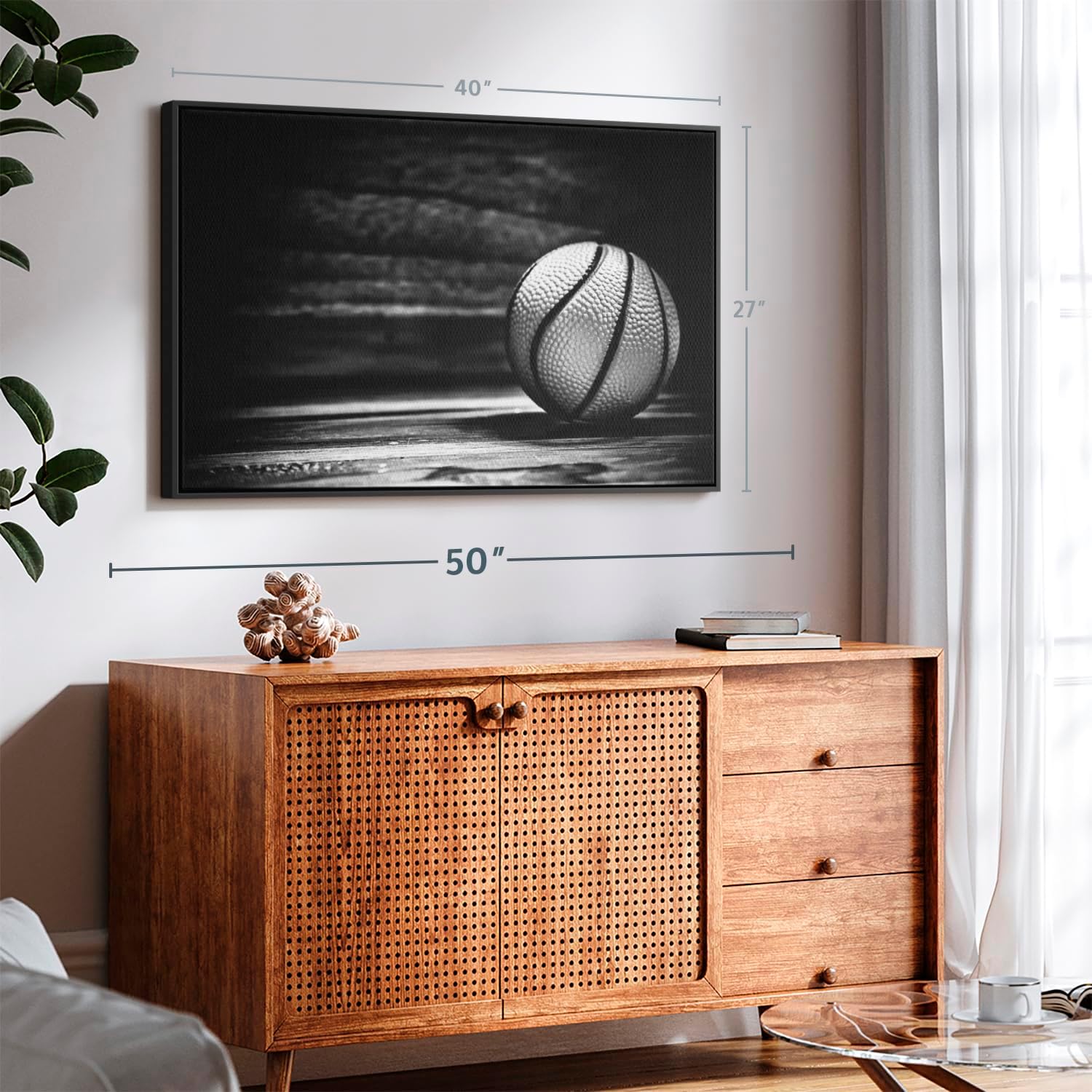 ElephantStock Basketball Wall Art - Horizontal Framed Canvas - 1-Piece Hallway Wall Decor - Photography sports Canvas Print - Black and Gray Decor for Wall - 40" X 27"