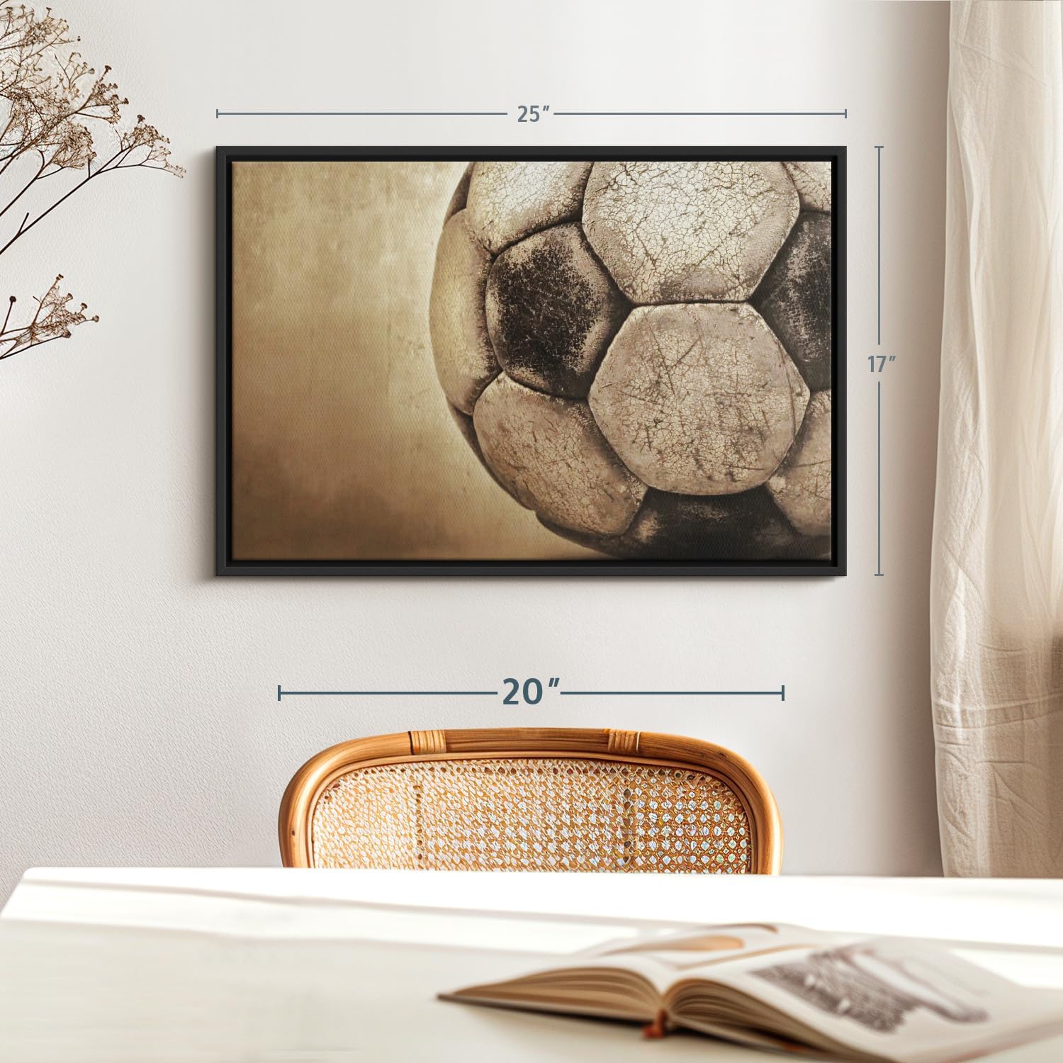 - Durable Canvas Features - Our long-lasting team sports 1-Piece canvas is made from a non-fading UV and Humidity-resistant 330 GSM Polyester Canvas. This Worn Soccer Ball canvas can be used as a modern living room wall art.