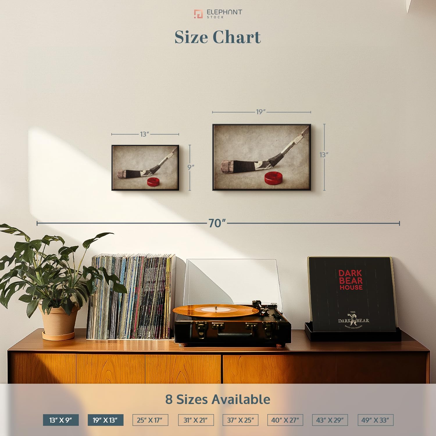 Elephant Stock Vintage Ice Hockey Wall Art - Horizontal Framed Canvas - 1-Piece Hallway Wall Decor - Photography Sports Canvas Print - Brown and Beige Decor for Wall - 19" X 13"