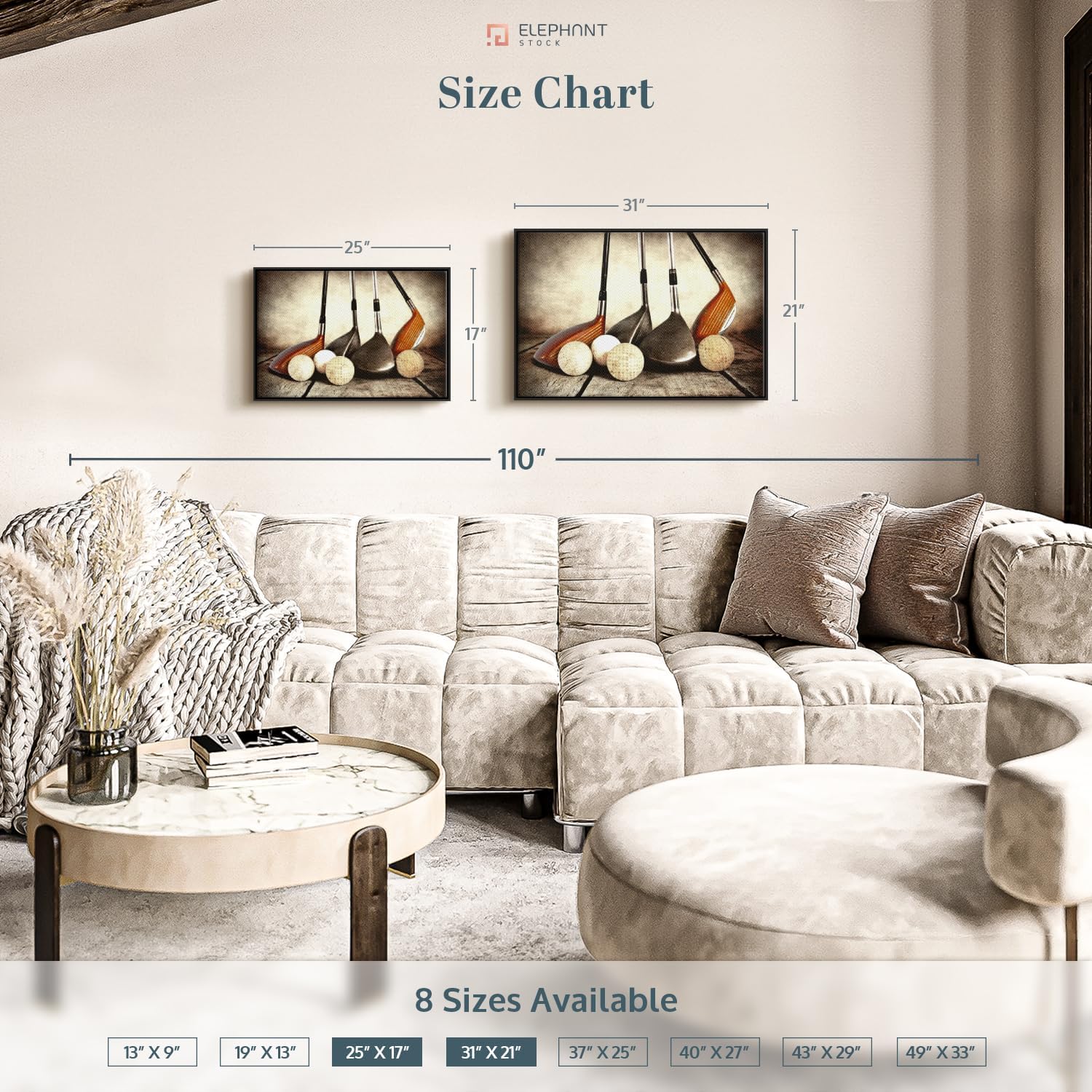 - Durable Canvas Features - Our long-lasting other sports 1-Piece canvas is made from a non-fading UV and Humidity-resistant 330 GSM Polyester Canvas. This Golf Sets canvas can be used as a masculine mancave wall art.