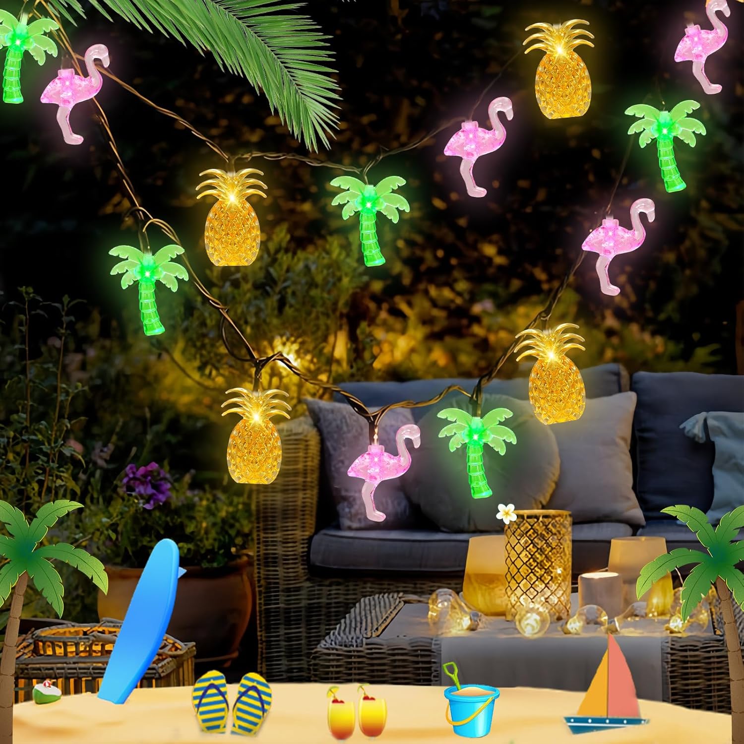 - đGreat Summer Gift: Hawaiian Tropical String Lights have a nice soft glow,look warm and bright. These are ideal for adding a cozy atmosphere. Flamingo pineapple palm tree set off at night even more cute, delicate, harmonious. These summer decorations evoke the essence of the season.