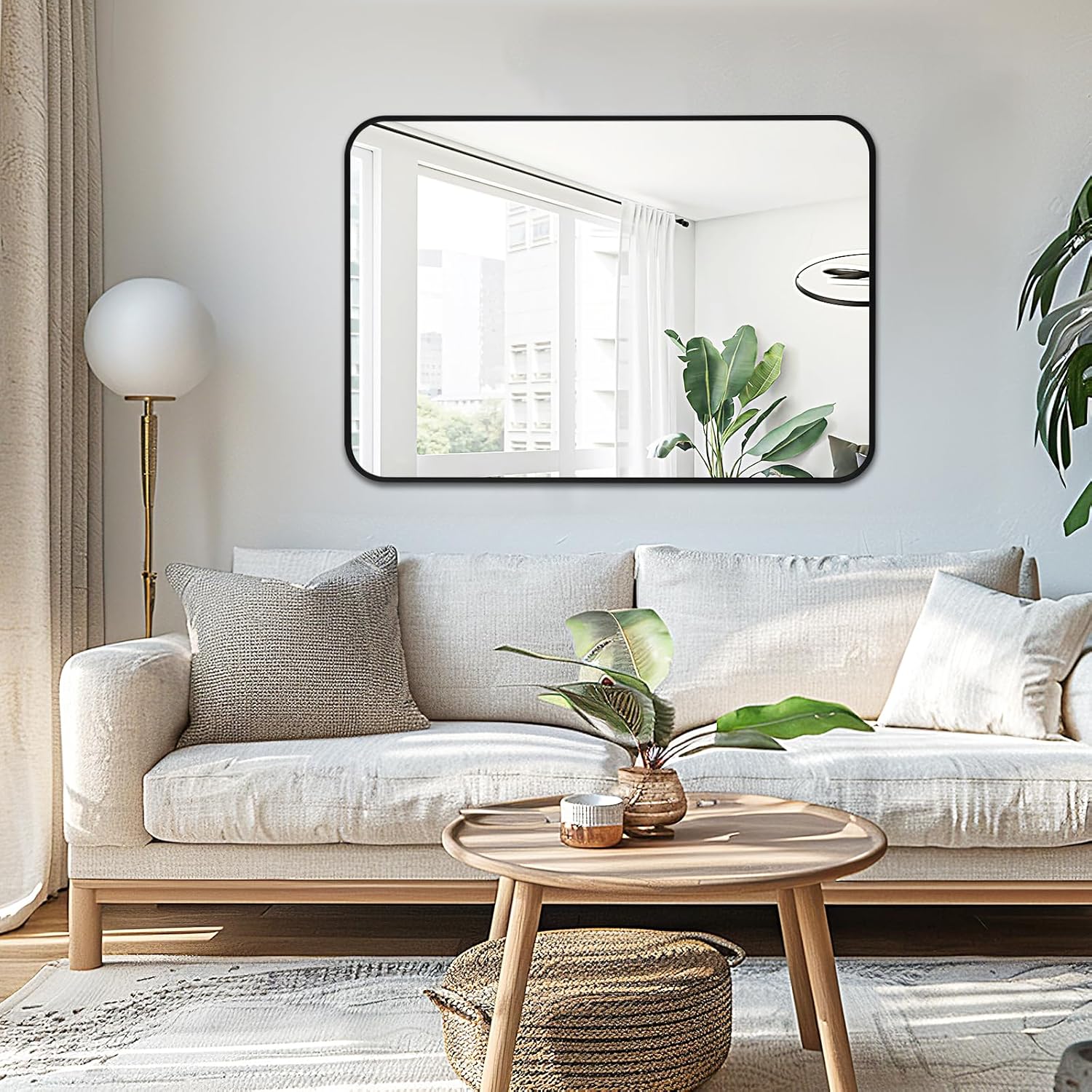 Fabuday Big Black Bathroom Mirror for Over Sink Wall - 26x38 Rounded Rectangle Mirror with Matte Metal Frame, Large Rectangular Vanity Mirrors for Bedroom, Entryway, Horizontally/Vertically