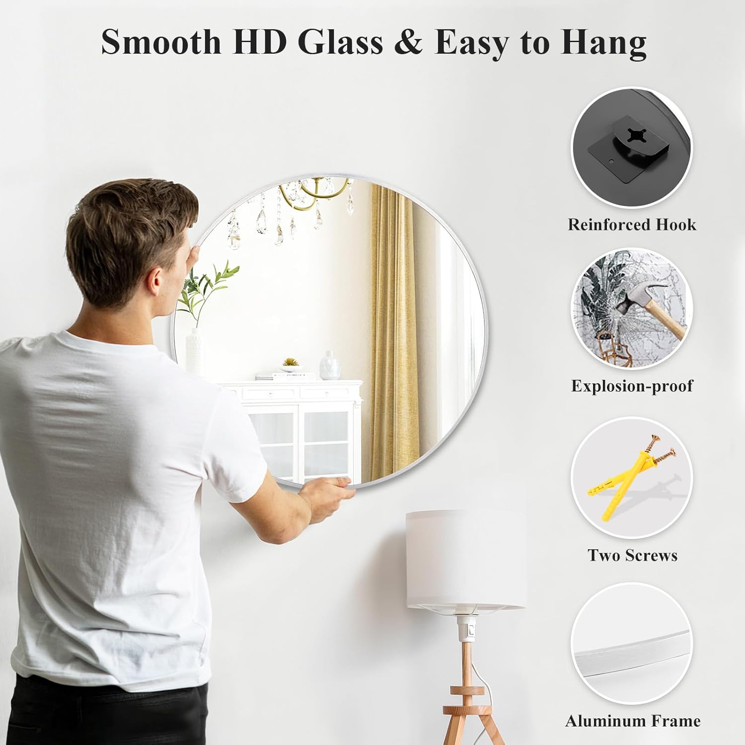 - Install is a Breeze - With the easy-followed instruction and complete accessories, you can install the modern mirror in a short time. Whatâs more, this circle mirror adopts explosion-proof glass, safe, waterproof and moisture-proof, that can use for long time and will not hurt your children