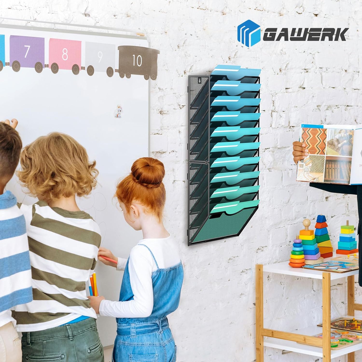 - Sturdy Metal Structure - Gawerk hanging paper organizer is made of high-quality metal materials. This magazine rack wall mounted has a powder coating, oxidation resistance and rust prevention, effectively prolonging its service life.