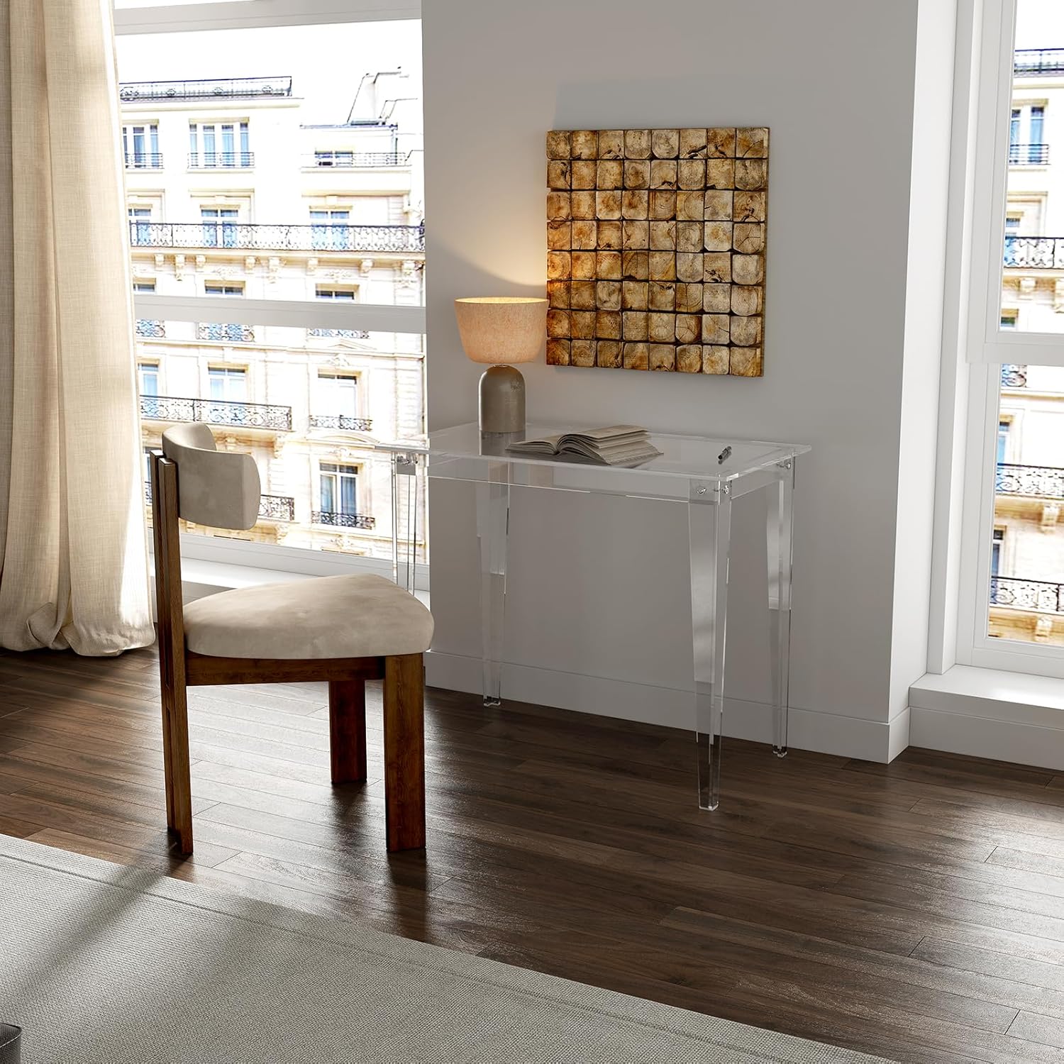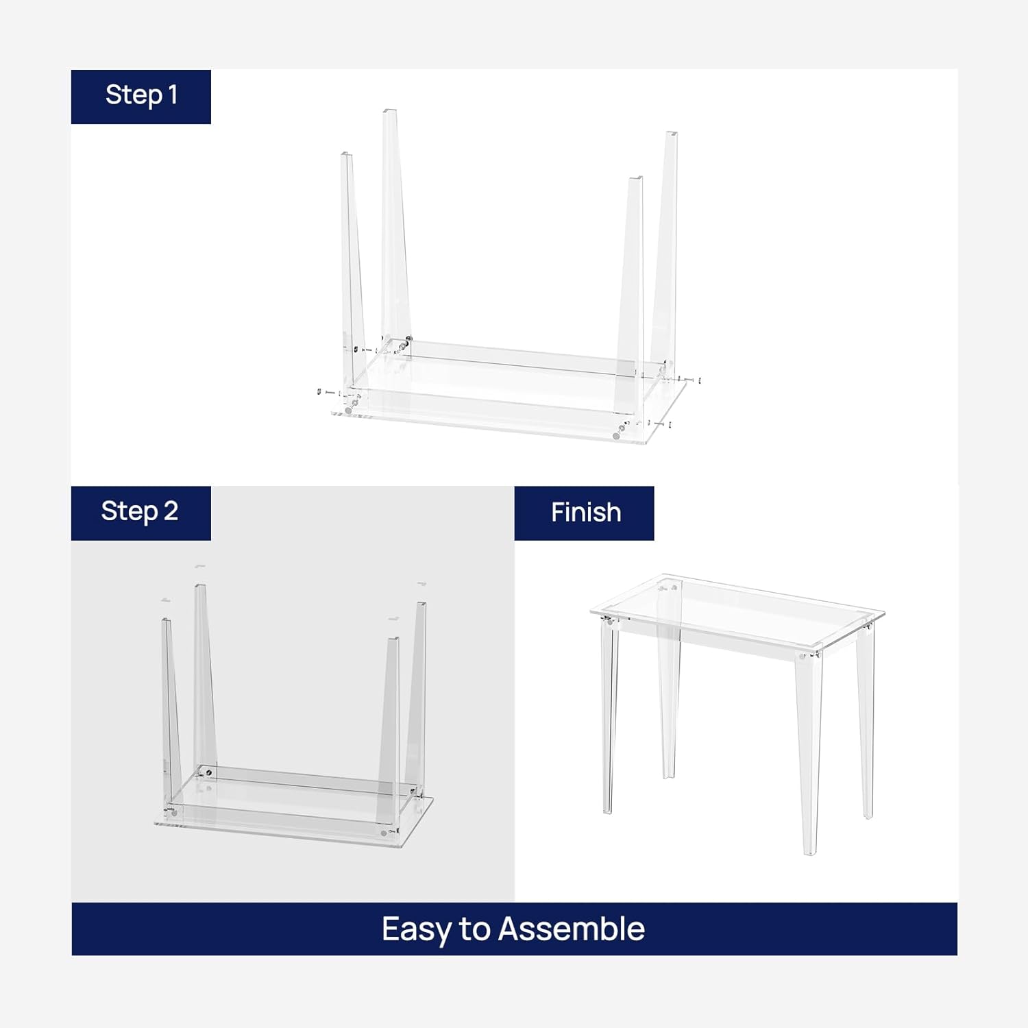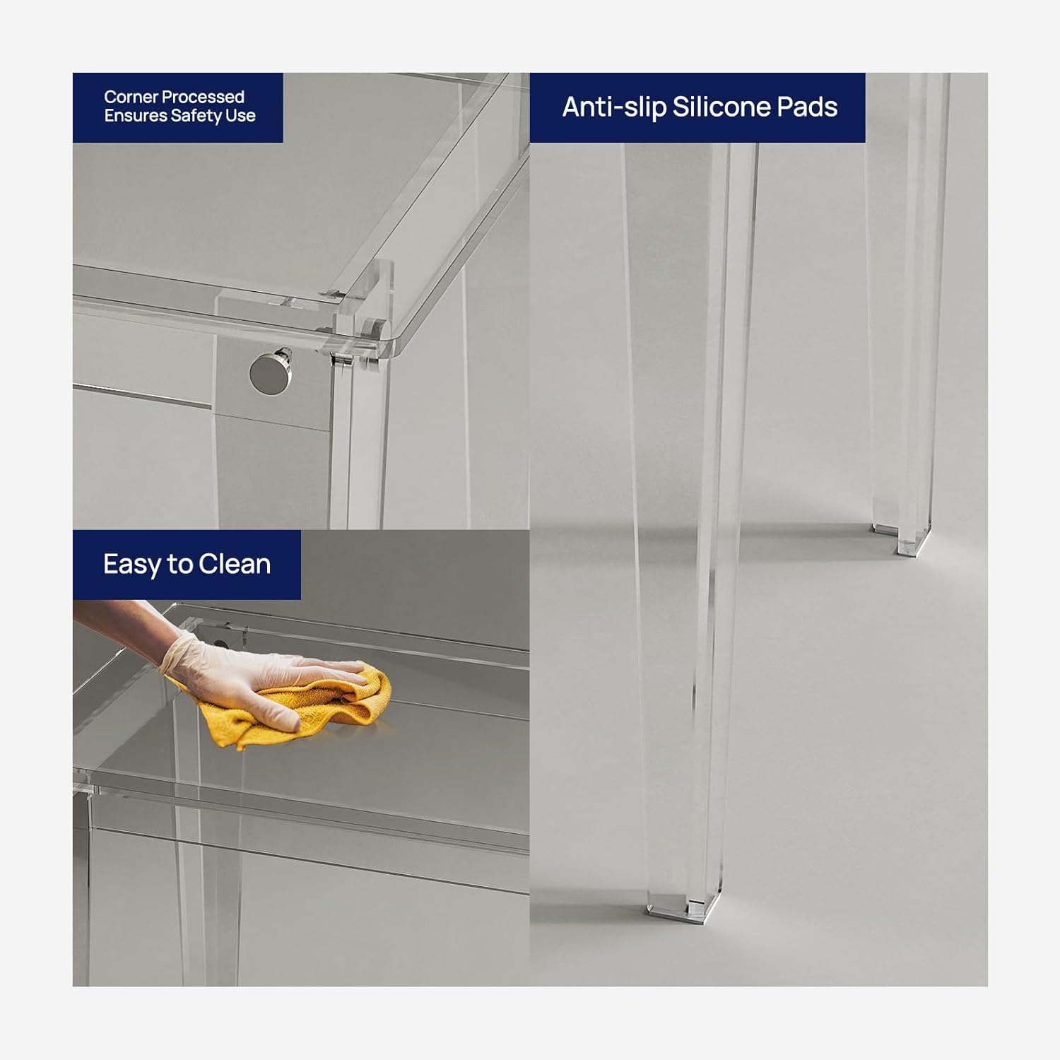 - Minimalist Style: Transparent acrylic desk with Right-Angle legs, simple & modern. Its unique design elements add a sense of modernity and sophistication into your living space. Round corner design and smooth edges, safety for use, especially for families with children.