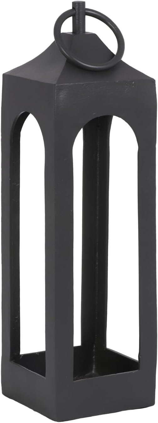 Medium Black Lantern, Rustic Metal Decorative Lantern, Candle Holder for Indoor & Outdoor, Home Decor for Patio, Garden & Tabletop, Hanging Lantern for Parties & Weddings