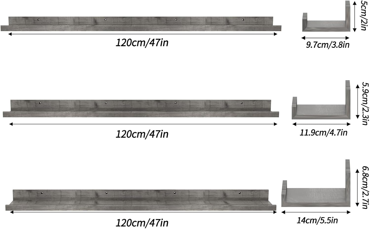 - Multi-functional storage: This large wall-mounted shelving unit provides ample storage space to keep your home organized and tidy. To meet your different storage needs in different places, this 47 inch floating shelf set offers multiple storage spaces in different sizes.