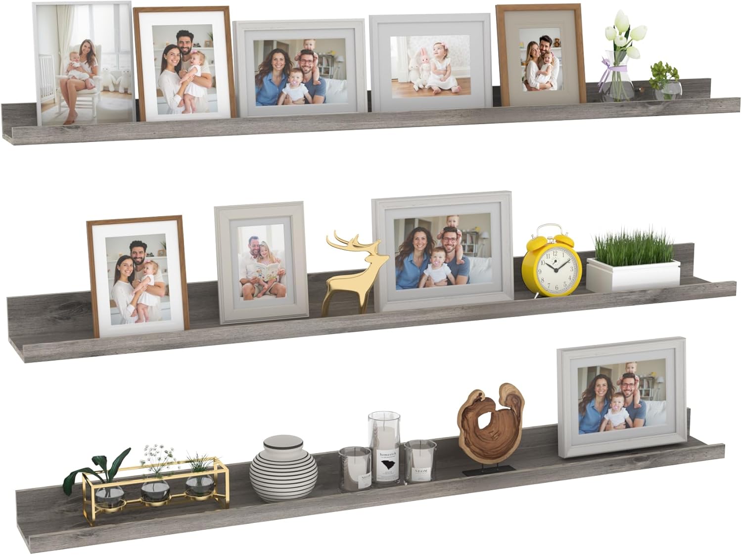 Giftgarden 47 Inch Gray Floating Shelves for Wall Mount, Grey Wood Wall Shelf Ledge for Bathroom Bedroom Living Room Kitchen Storage, Set of 3 Different Sizes