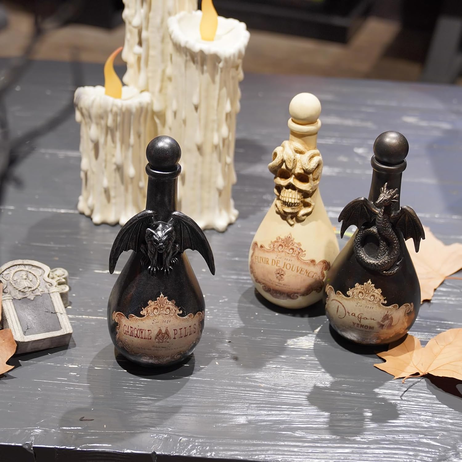 - 【Potion Bottles】This potion bottles is made from resin, hand-painted and polished individually. To create the greatest elixir concoction, every witch knows they need ingredients