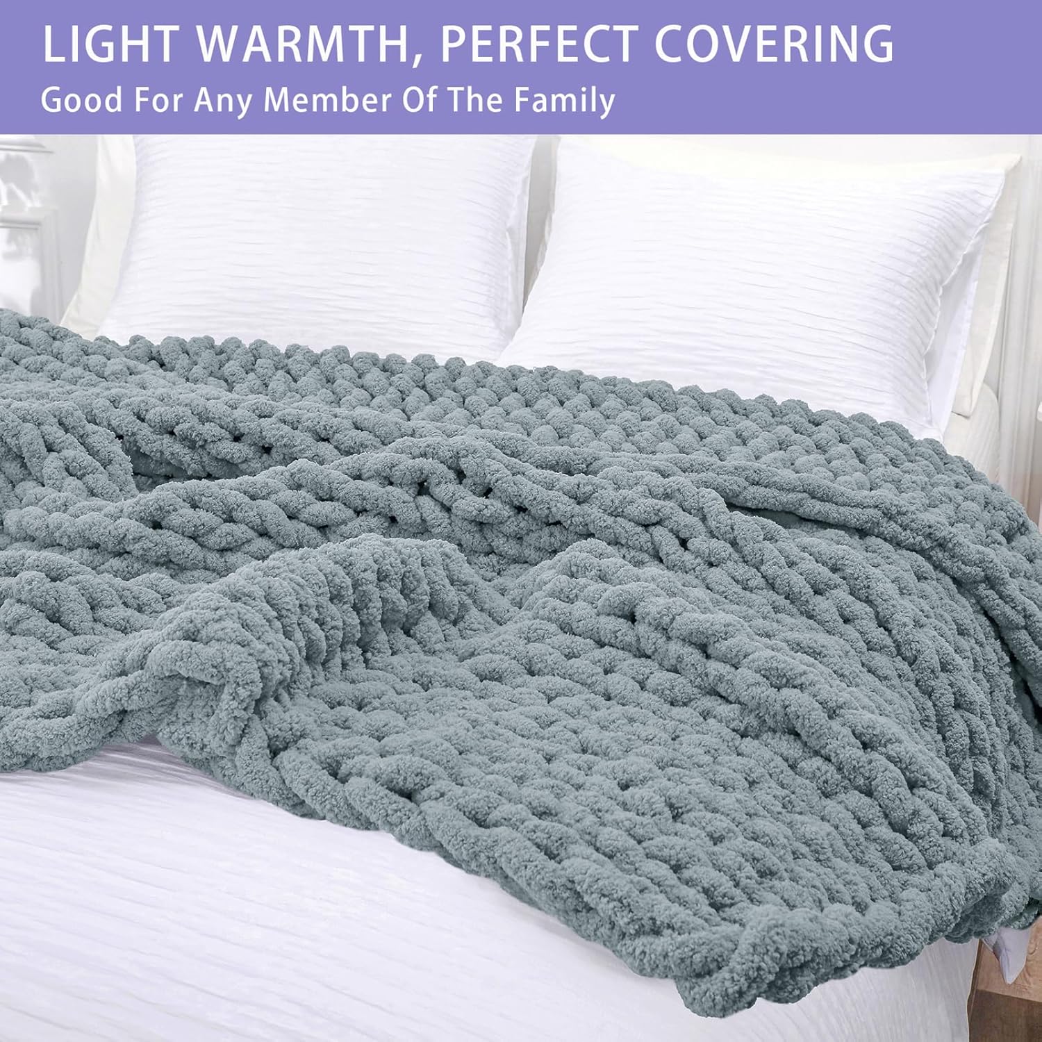 - No Shedding, No Stiffness, No Prickly: Our soft thick blankets and throws are knitted with premium chenille yarn to prevent shedding and stiffness, on chilly days, wrap you and your loved ones in the chunky blanket and enjoy this cuddly throw together