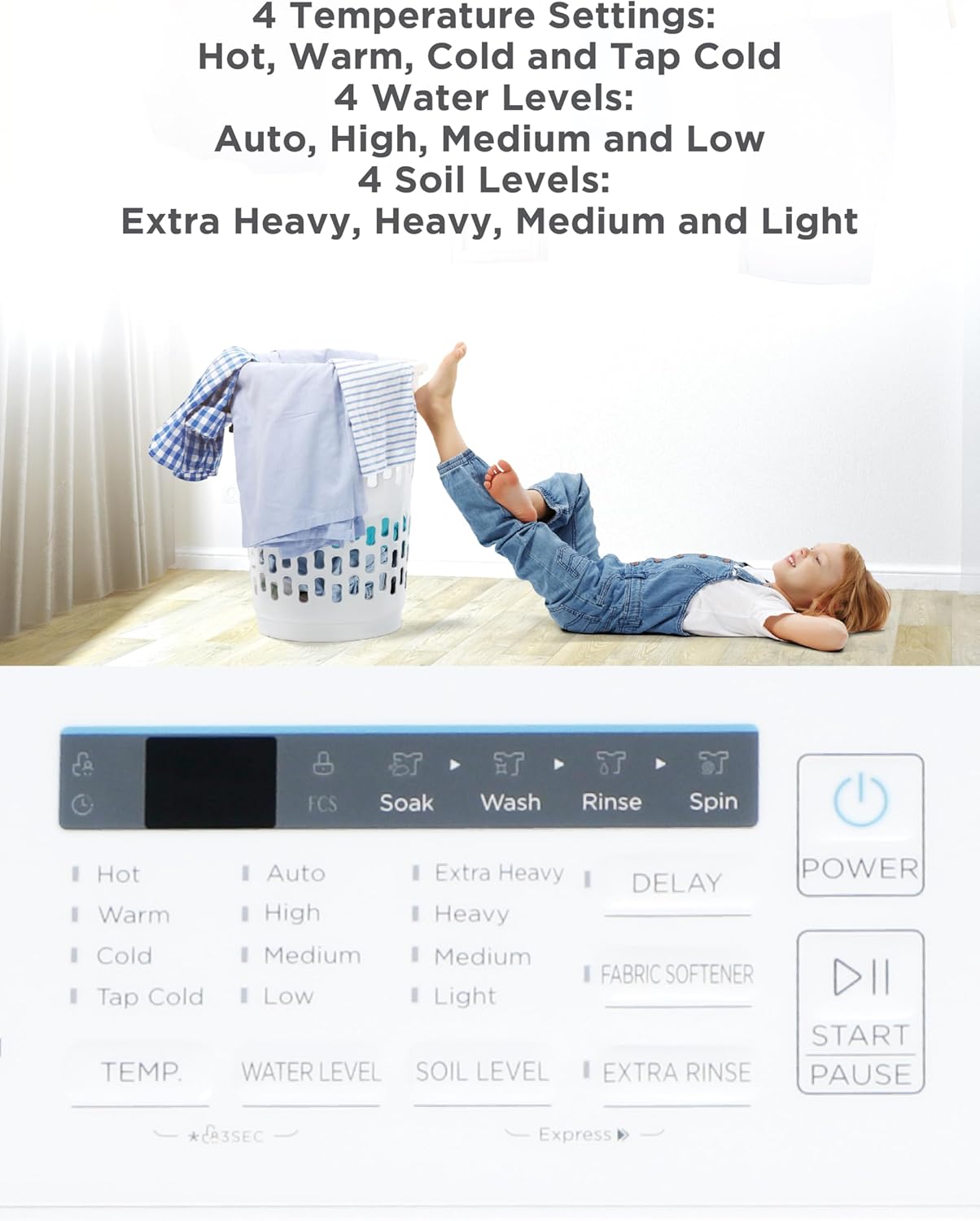 - Timed Delay Feature: With a 24-hour delay function, this full size washing machine offers flexibility in scheduling. Perfect for busy lifestyles, simply plan wash cycles at your convenience