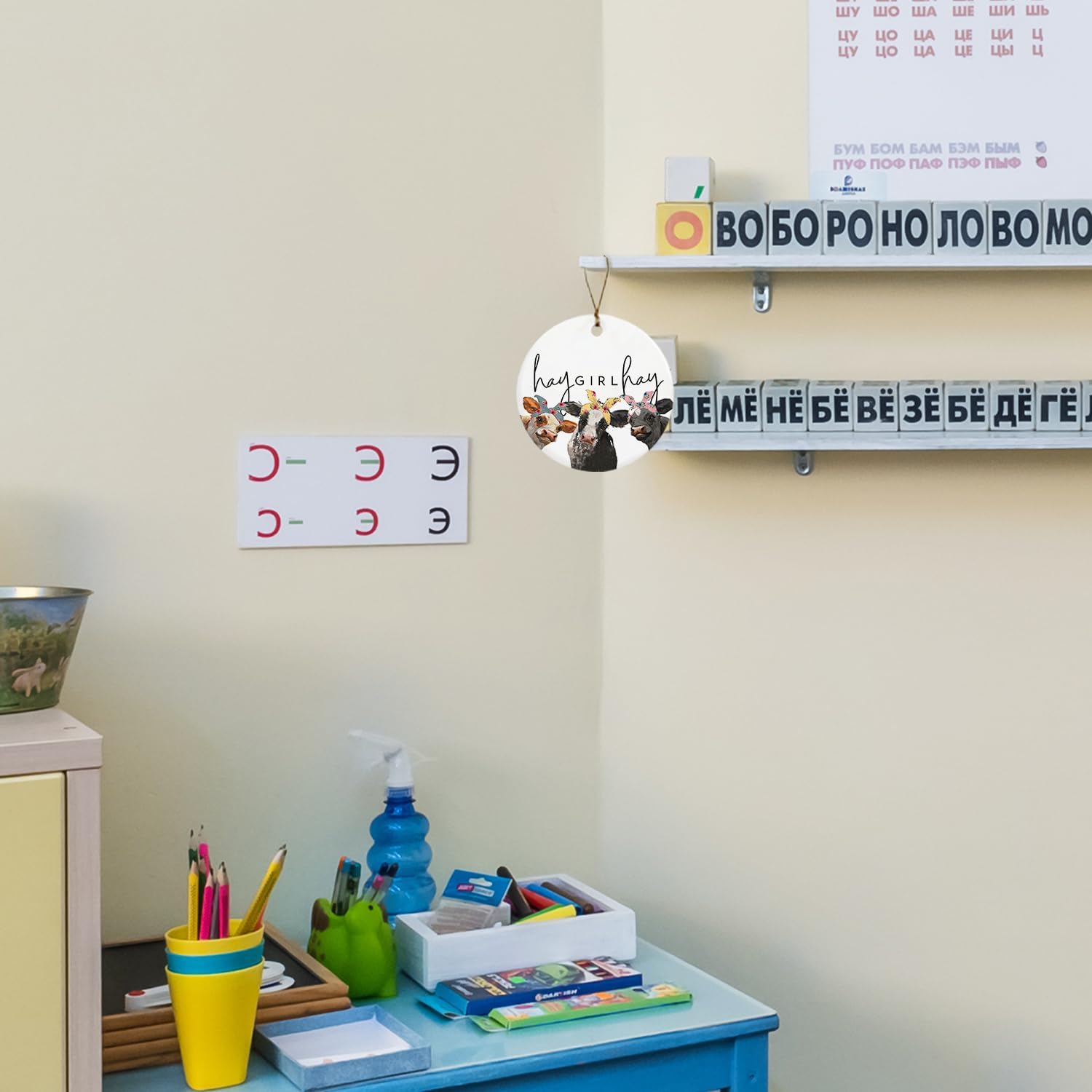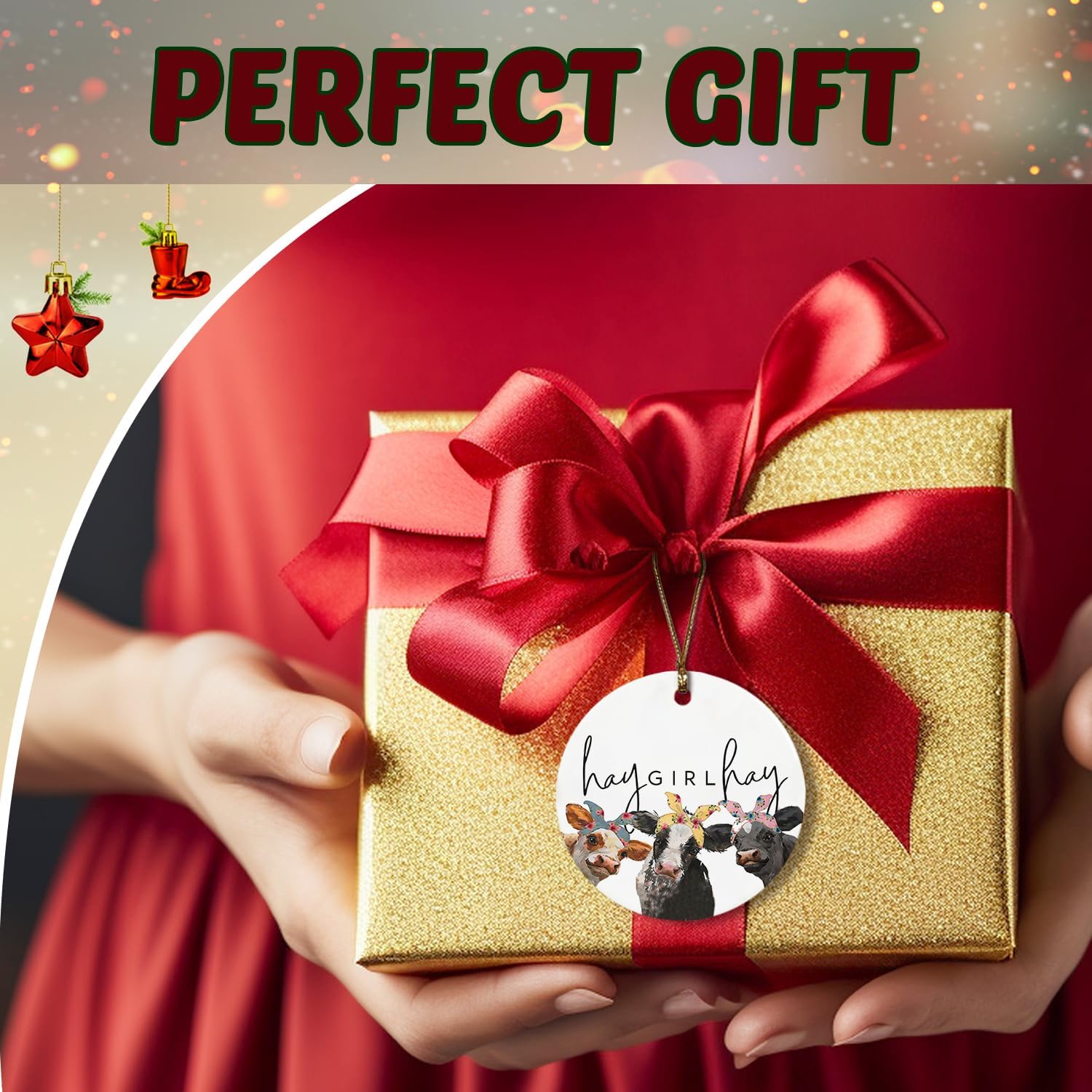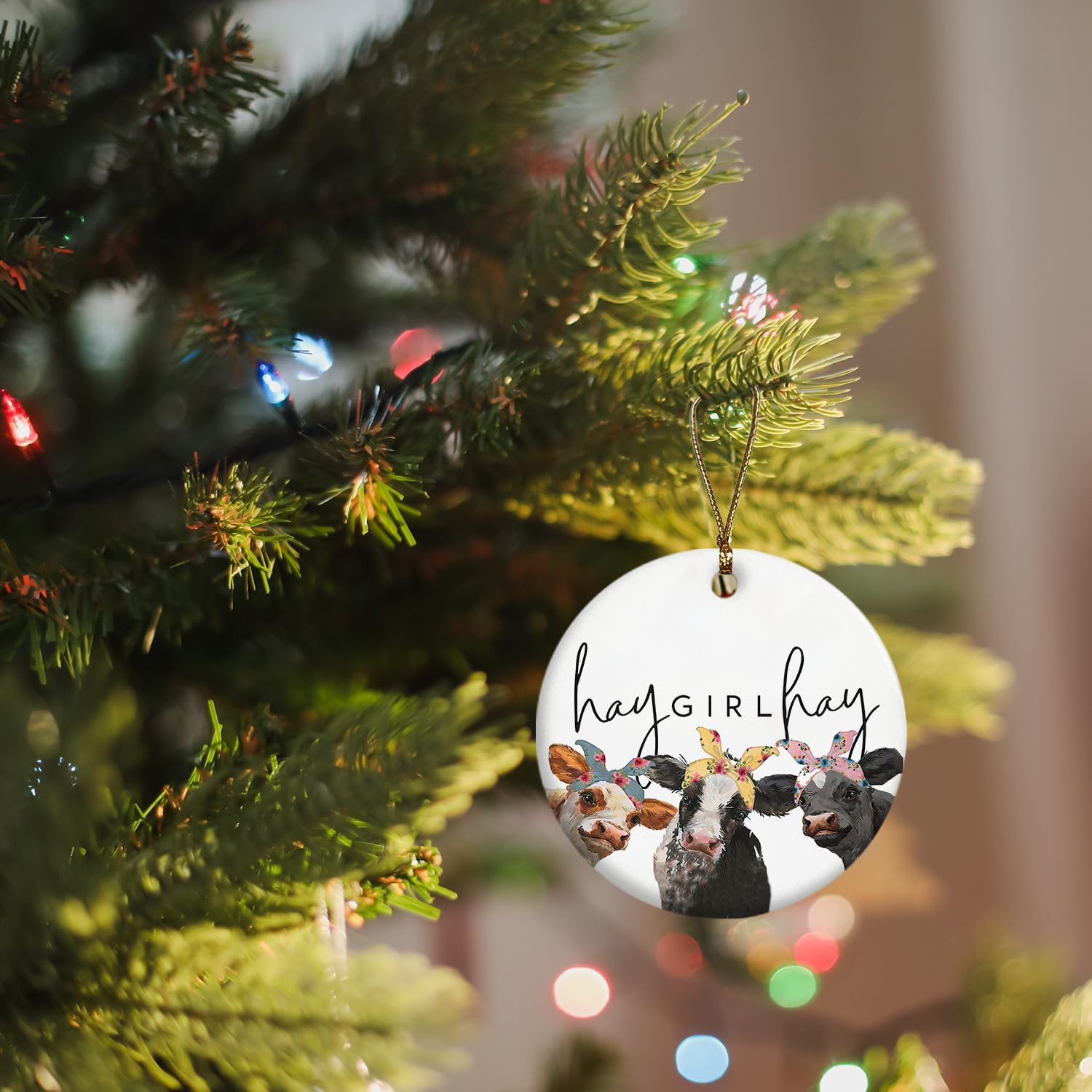 Cow Gifts for Women Cow Lovers Girls, Hay Girl Hay Farmhouse Ceramic Christmas Ornament Keepsake Sign Plaque, Girls Room Bedroom Dorm Decor