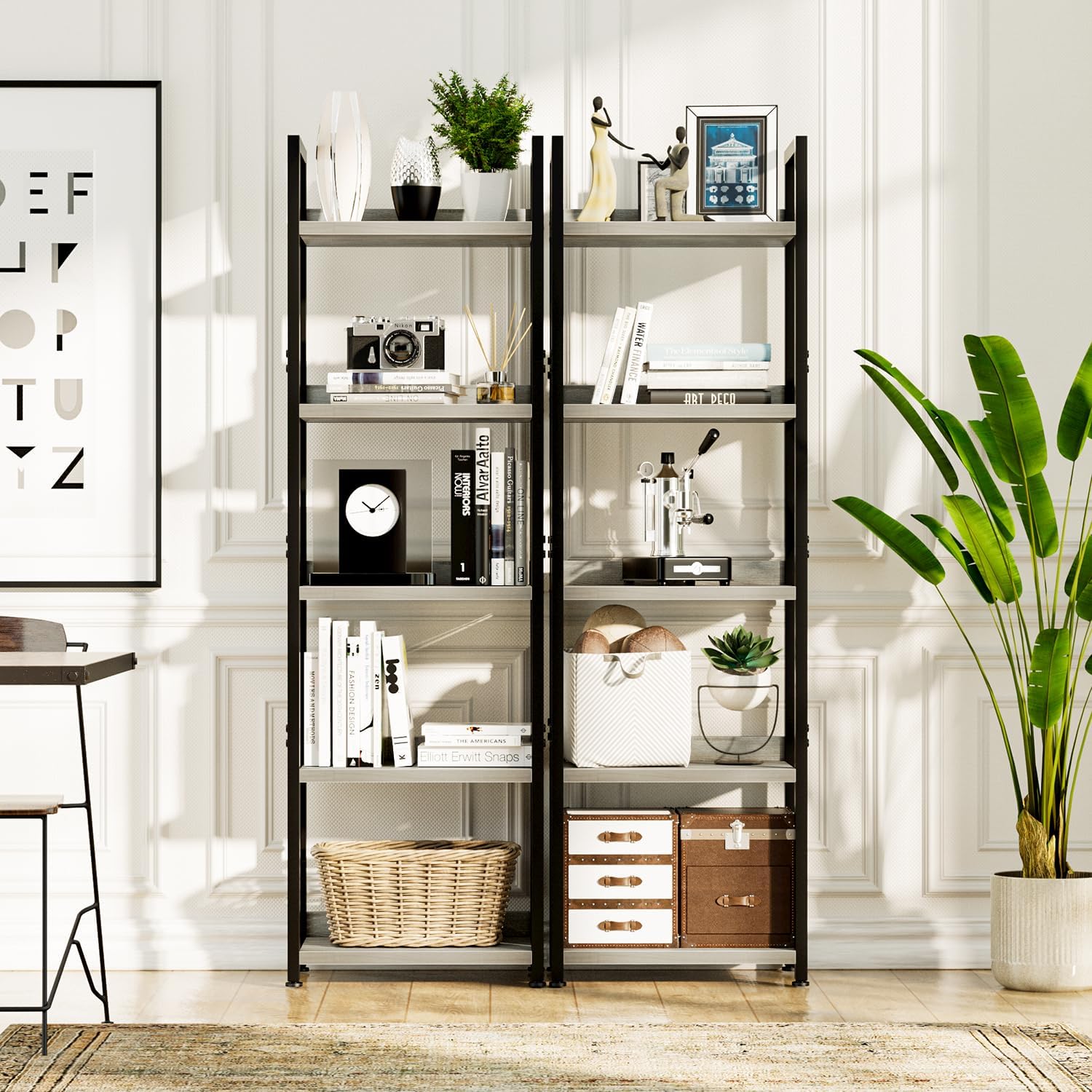 - 5 Tier Open Multifunctional Bookshelf: This five shelf bookcase provides a multifunctional storage space, you can use it to place all kinds of items as you see fit; Beautiful bookshelf panel with waterproof and anti scratch features, very easy to clean