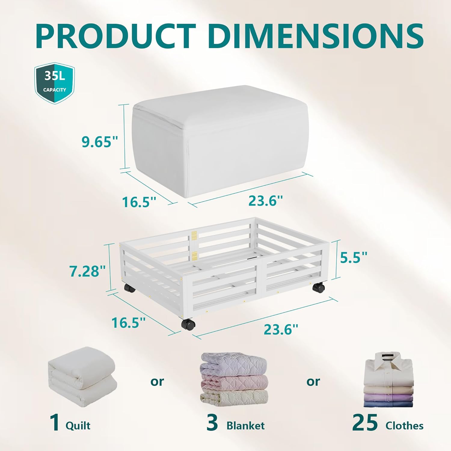- 👍[Sturdy and Durable] Our under bed storage with wheels is crafted from premium wood bamboo, boasting 4 rotating wheels and a capacity of 120lbs. This 'under bed storage' solution includes non-woven bags for efficient organization of clothes, books, shoes, and toys.