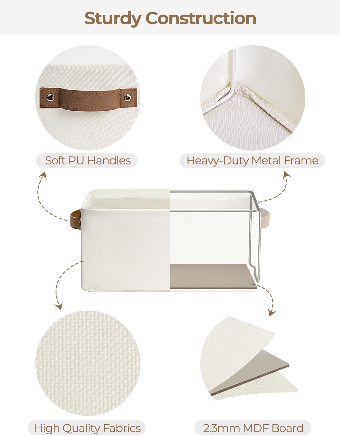 - Sturdy Structure: The fabric storage bin features metal frames supporting the top and sides, with a high-quality MDF base at the bottom, ensuring excellent overall structural stability.