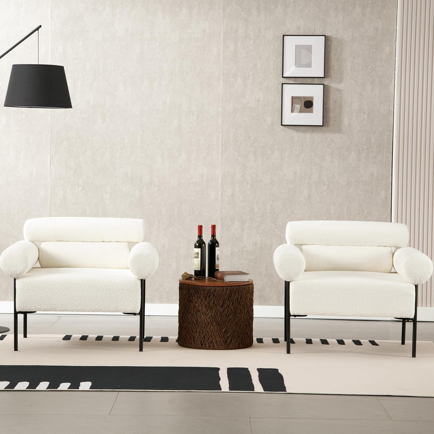 Modern Accent Chairs Set of 2, Boucle Sofa Accent Chairs for Living Room, Oversized Upholstered Sherpa Mid-Century Office Reading Armchairs with Channel Tufted for Bedroom, White