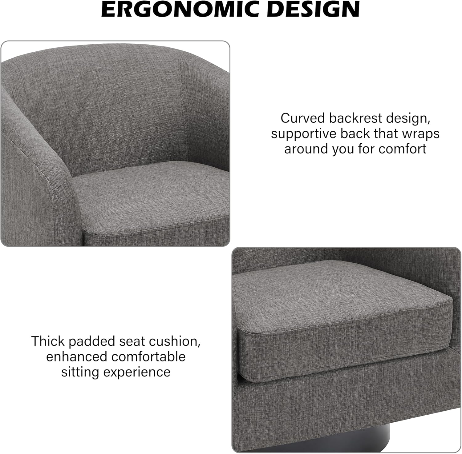 Swivel Barrel Accent Chair, Modern Round Linen Arm Chair for Living Room, Bedroom, Comfy Club Reading Chairs for Adults(Linen Fabric, Grey, Set of 1