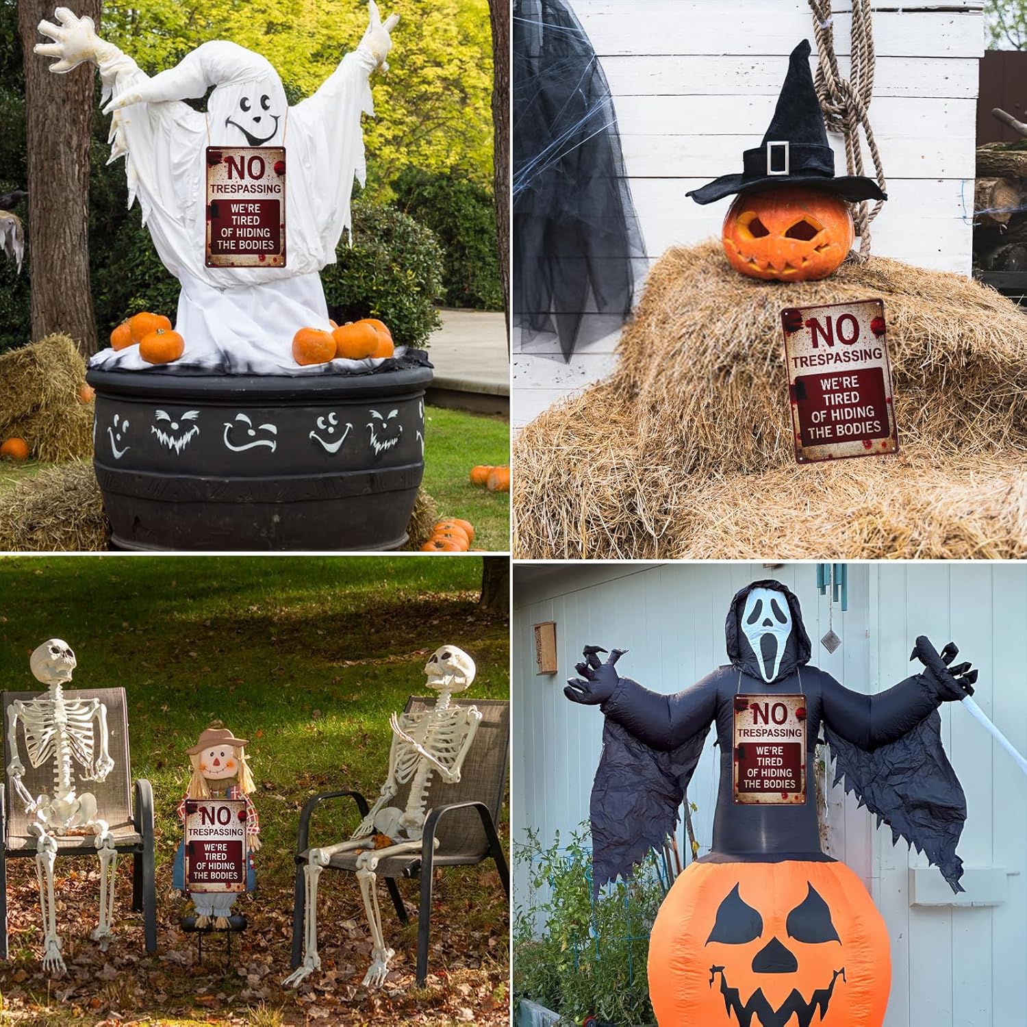 Halloween Decorations Metal Tin Sign for Outdoor Yard, Garage Wall, Rustic Vintage No Trespassing We're Tired of Hiding The Bodies, 7.8x11.8in