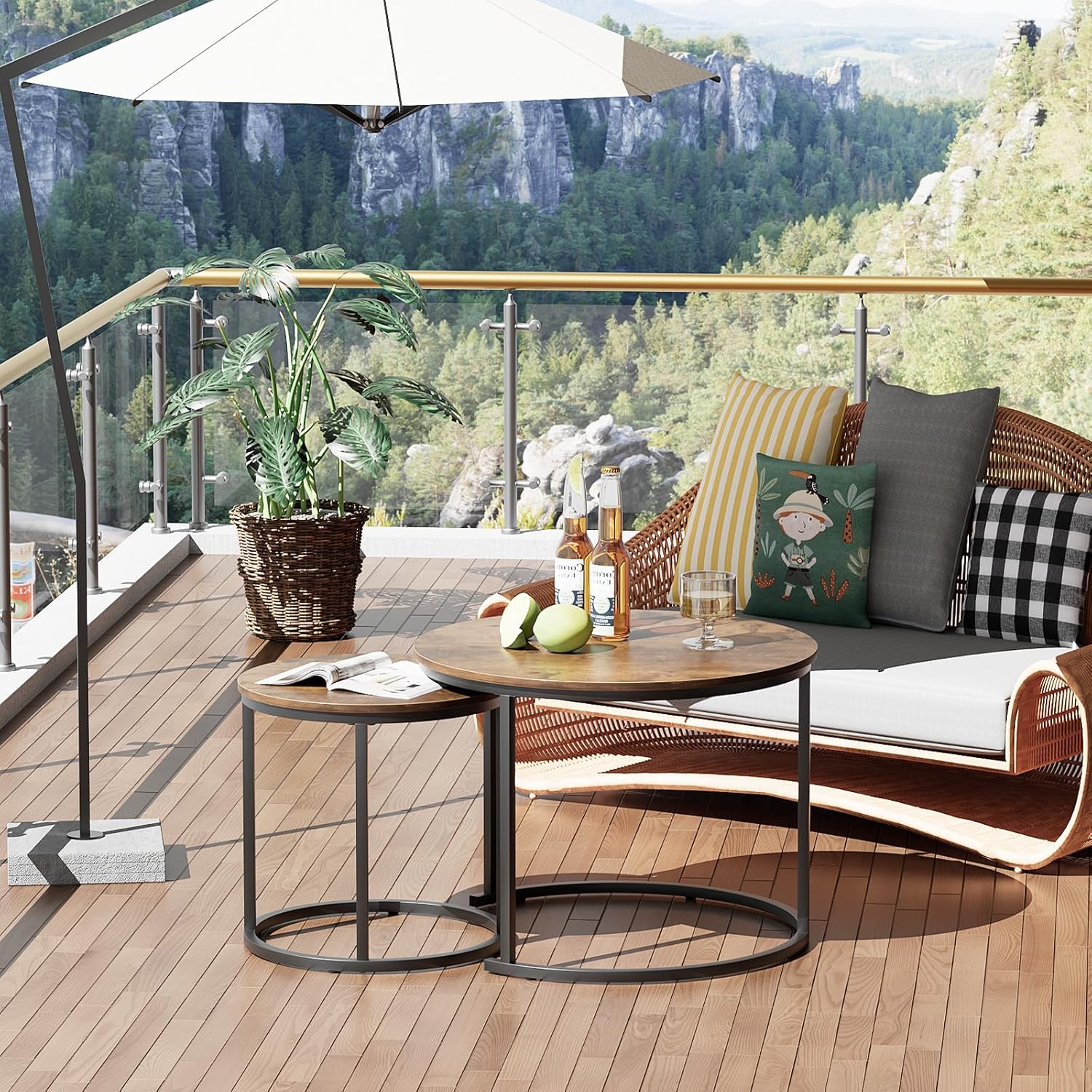 aboxoo Coffee Table Nesting Round Table Set of 2 Side Table with Sturdy Metal Frame for Living Room Bedroom Apartment Modern Industrial Simple Nightstand,Rustic Brown