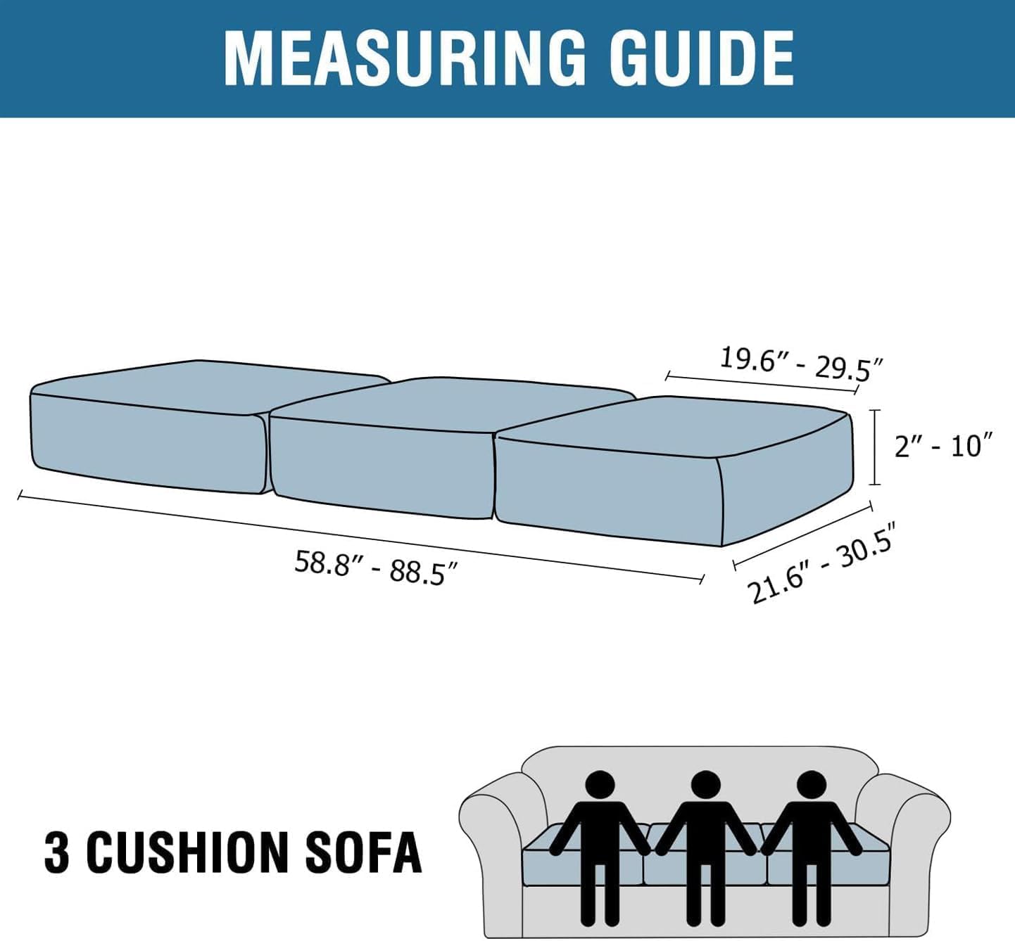 - ANY FORM FIT: Each cushion cover measures: 19.6-29.5" length, 21.6-30.5" width and 2-10" height. It's crafted from a unique extra stretchy fabric, perfect for regular square cushions, T-cushions and also L-cushions, used to cover not only the seat cushions of your sofa, but also the back cushions as long as they can be separated from the sofa