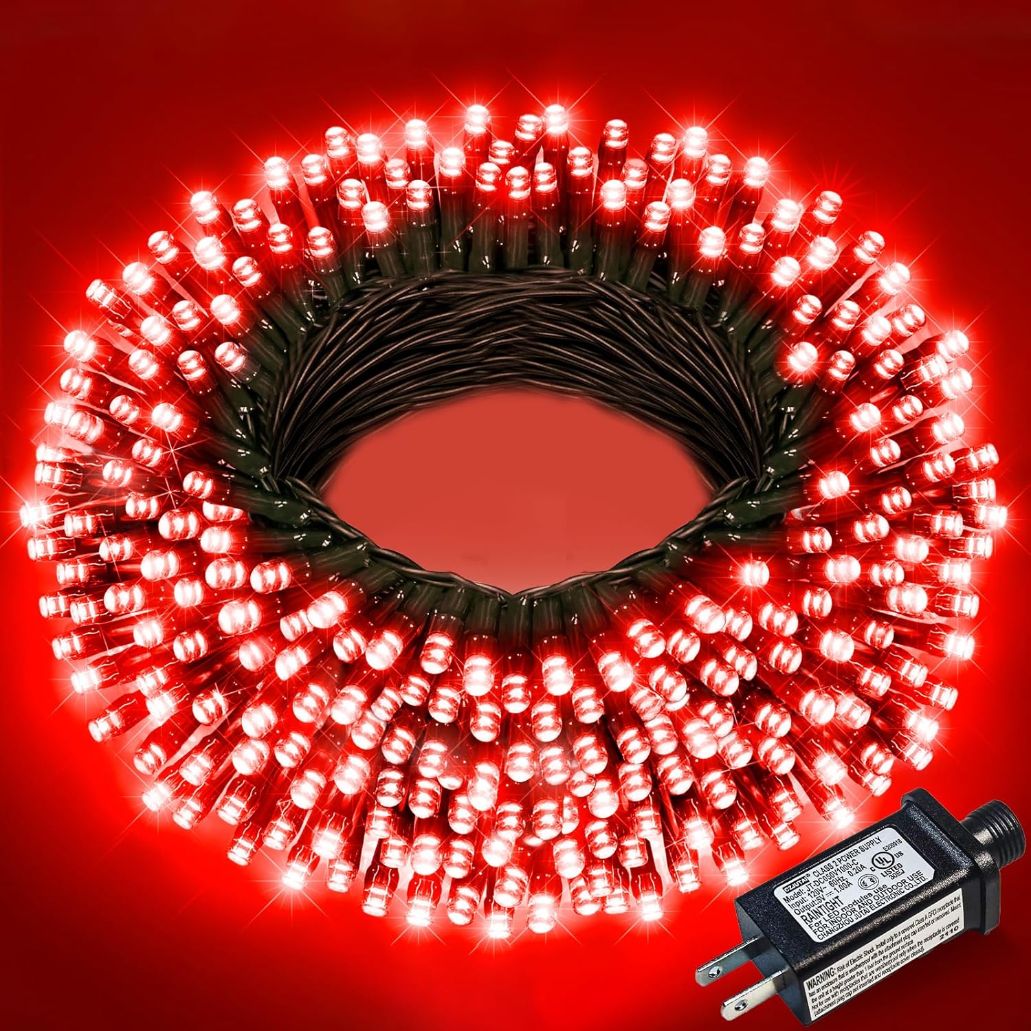- ă8 Lighting Modesă: This red string lights has 8 different lighting modes to choose from: combination, in waves, sequential, slo-glo, chasing/flash, slow fade, twinkle/flash, steady on. Press the button on the adapter to change the flashing modes. Moreover, built-in memory chip will save your last mode setting.