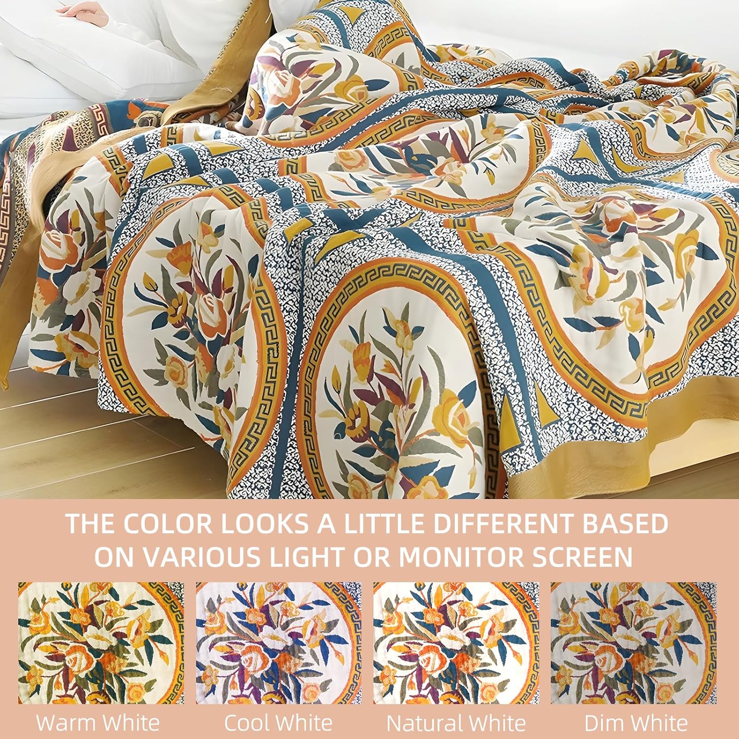 Boho Throw Blanket for Bed - 100% Pure Cotton Ultra Soft Rustic Quilt - Farmhouse Decor Bed Blankets, All Season Rustic Throw for Sofa Couch Chair(60"×80", Floral)