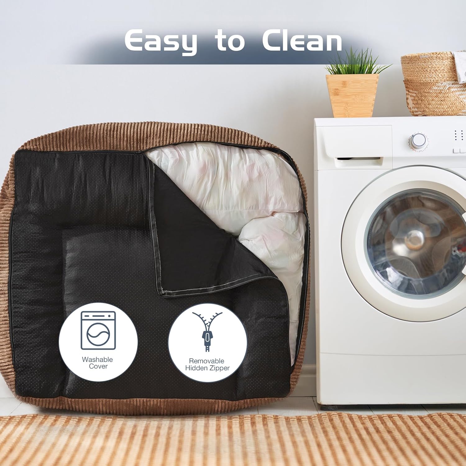 - ăEASY TO CLEANă: The cover can be removable with zipper on the bottom and put in the washing machine, can be easily cleaned and replaced, which can keep the bean bag chair clean.If there are small stains, simply wipe gently with a soft wet towel.Feel free to contact us if you have any problem.