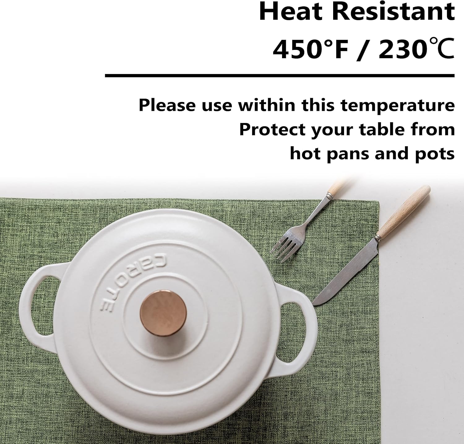 Home Brilliant Linen Cloth Placemats Set of 8 Heat Resistant Dining Table Place Mats Table Mat Kitchen for Wedding Holiday Parties Decor, Green