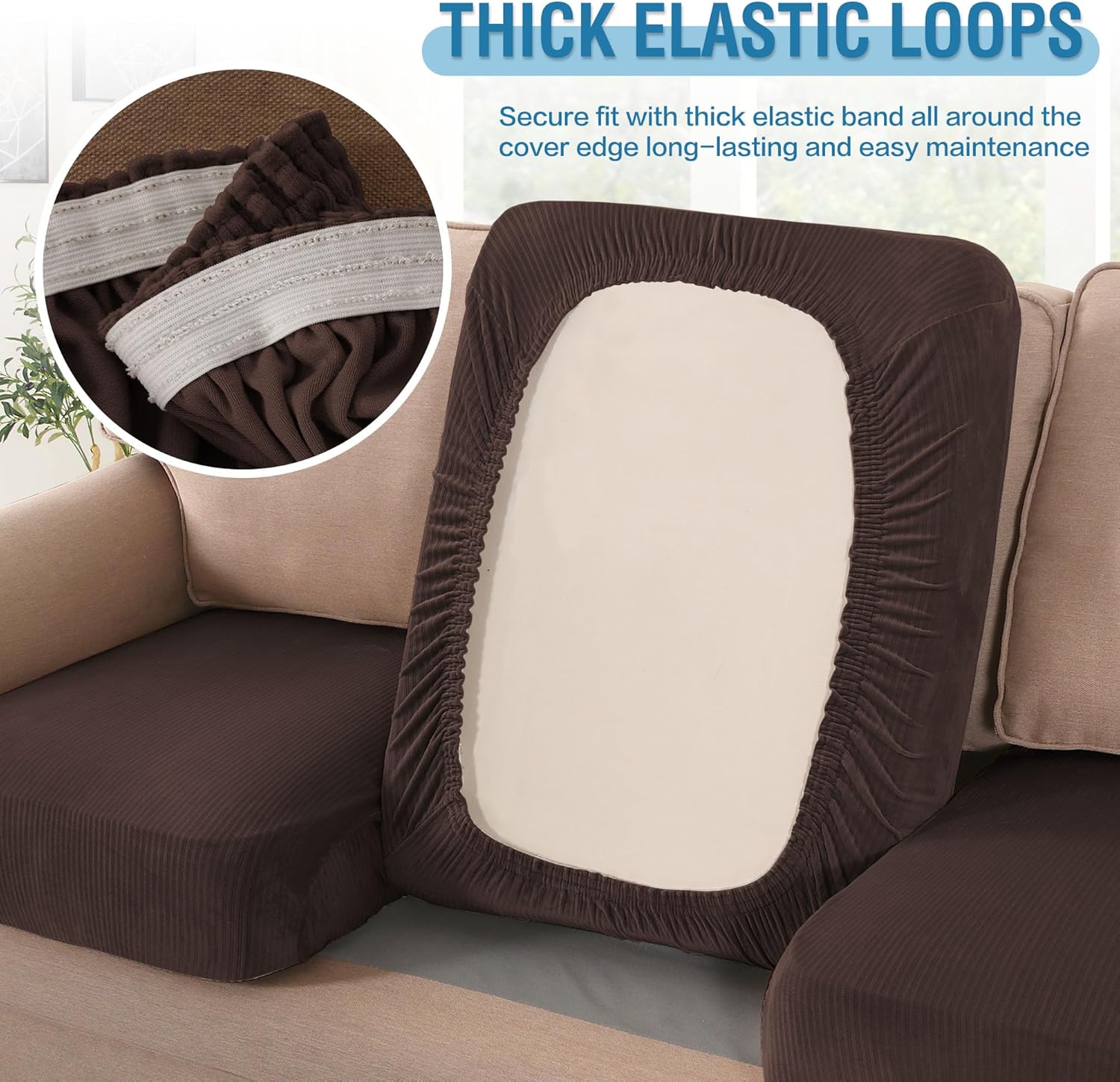 - INCREDIBLY COMFORTABLE VELVET: Products passed GLOBAL RECYCLED STANDARD certificate. 2 pieces included. Crafted from luxurious velvet plush fabric with unique striped cuts, feature thick, soft, smooth, anti-wrinkle, no fading, durable as well as highly stretch. Protect your cushion furniture from daily wears and tears, stains, kids, scratches from pet claws, dogs or accidental spills