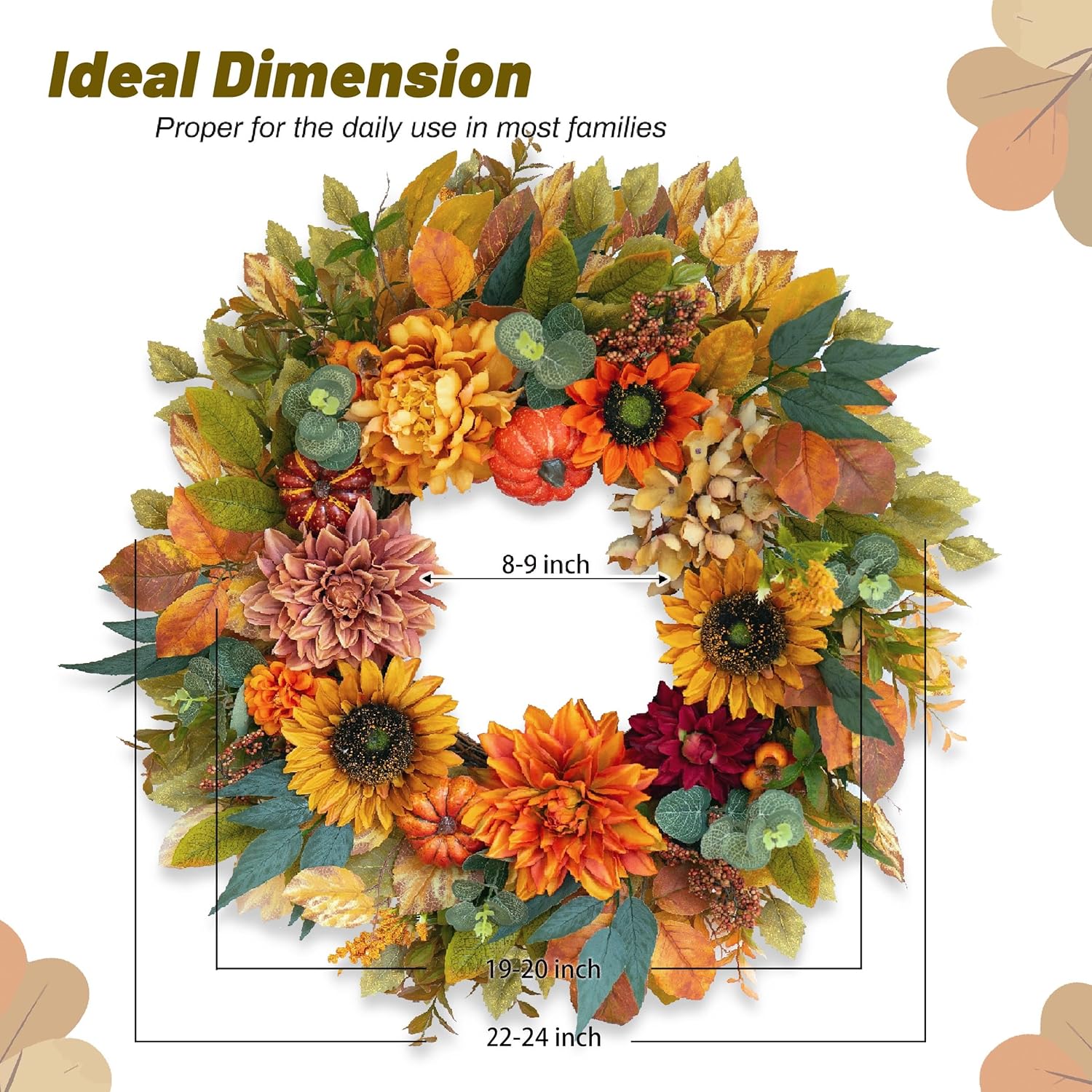- Lifelike Details & Full Texture – Packed with colorful autumn leaves, layered petals, and textured gourds, this fall wreaths for front door outside provides a realistic harvest look that elevates seasonal styling.