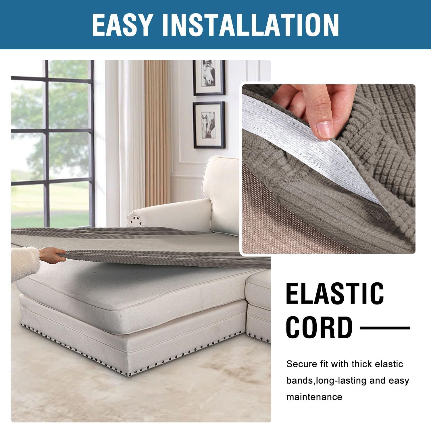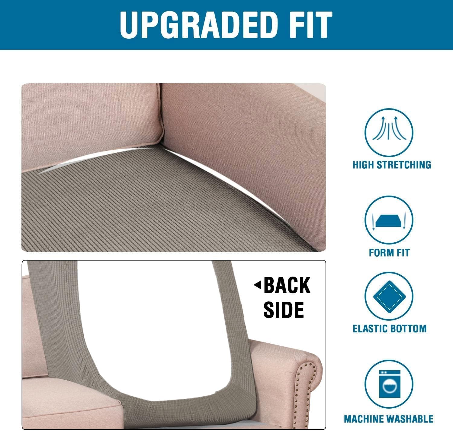 - NON SLIP: Effortless for installation (guide photos on selling page), sewn with thick elastic loops to cover the bottom edges. It is easy to install and take off, making your home more harmony, high recommended for both leather and cloth furniture