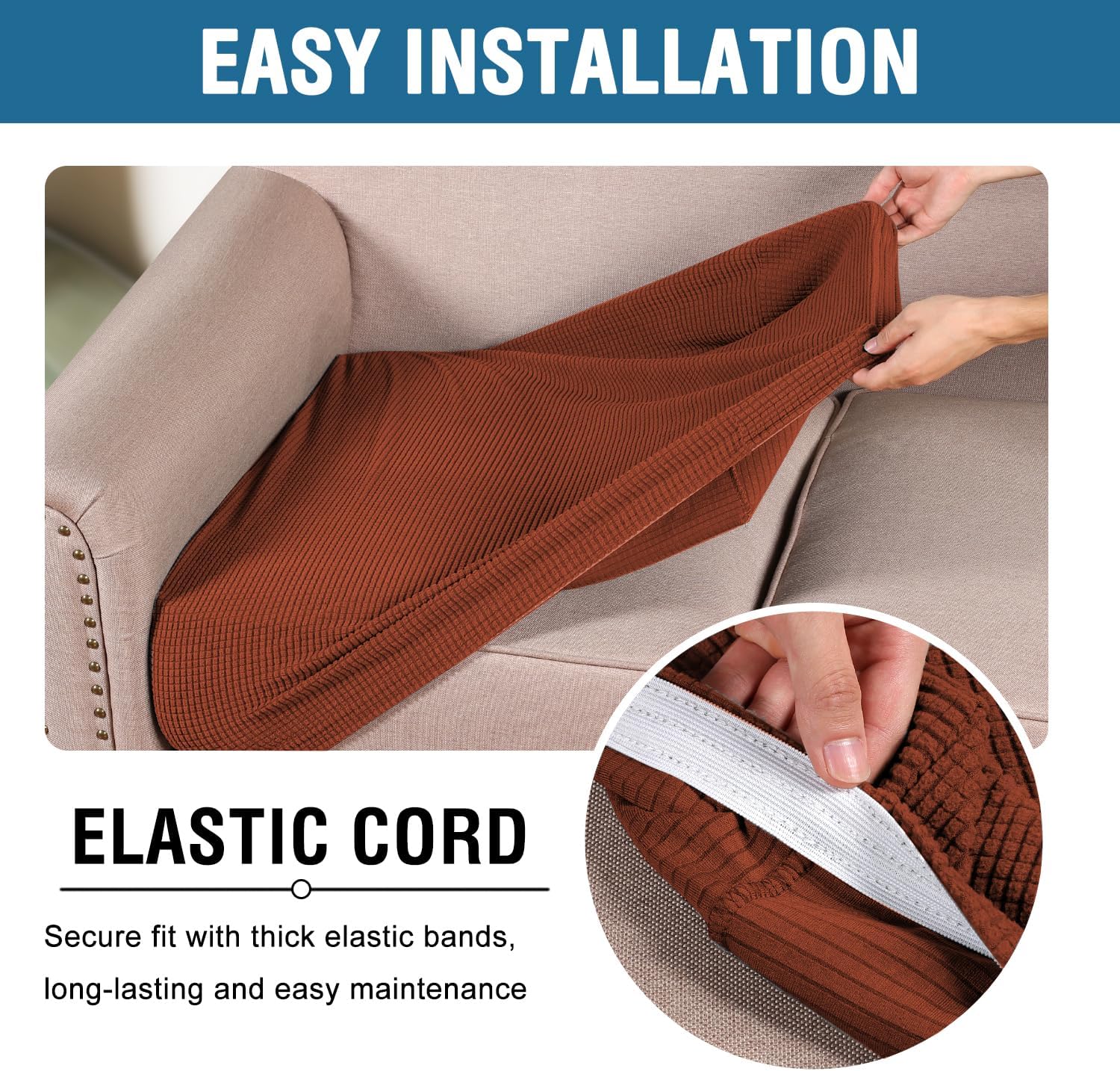 H.VERSAILTEX Super Stretch Individual Seat, Sofa Covers Couch, Cushion Covers Slipcover Sets Thick Jacquard Textured Twill Fabric (2 Piece Large Sofa Cushion Covers, Rust)