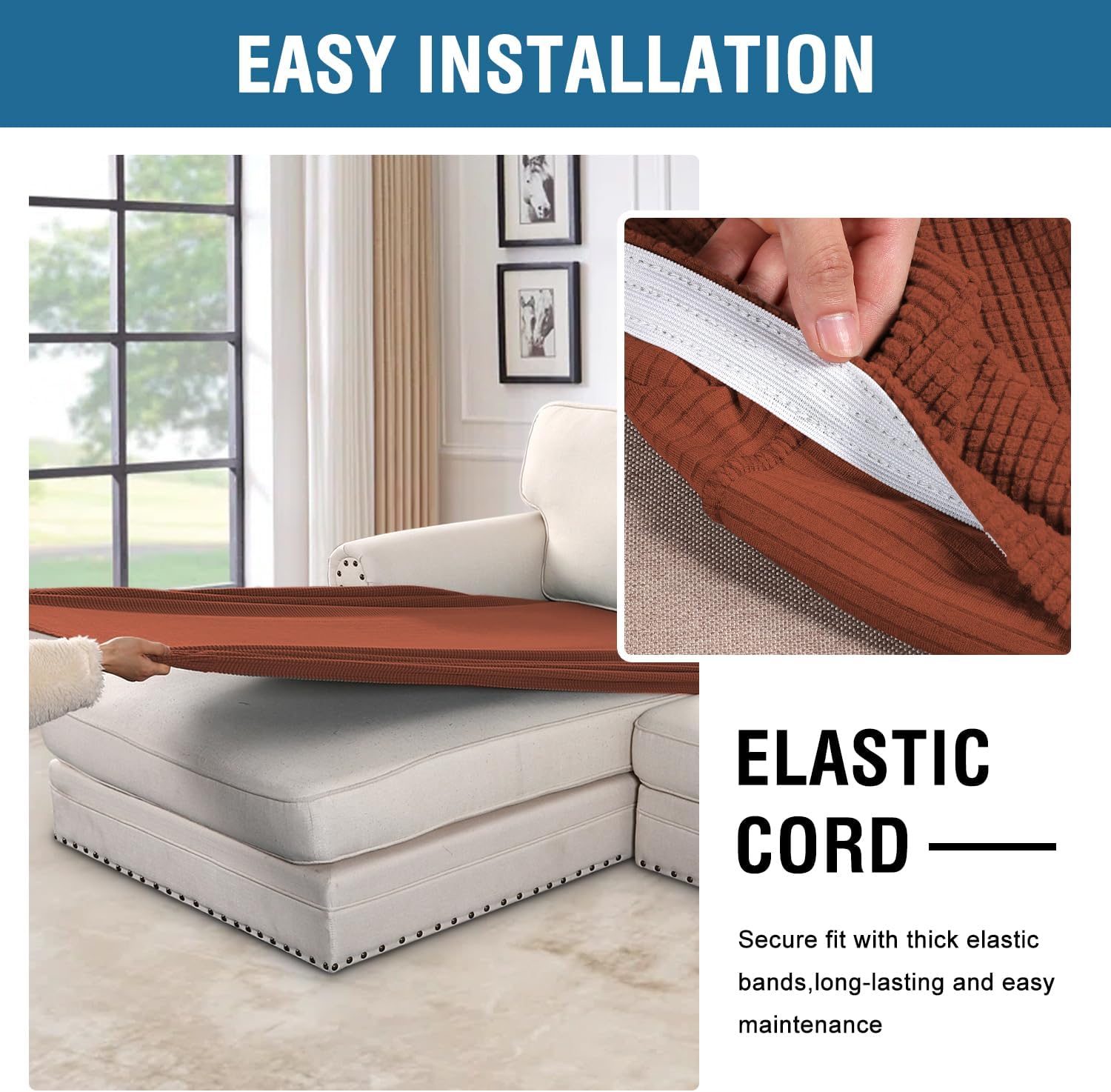 H.VERSAILTEX Super Stretch Individual Chaise Cover Sectional Couch Covers for L Shaped Sofa Both Left/Right Featuring Thick Jacquard Textured Twill Fabric (1 Piece Chaise Cover, Rust)
