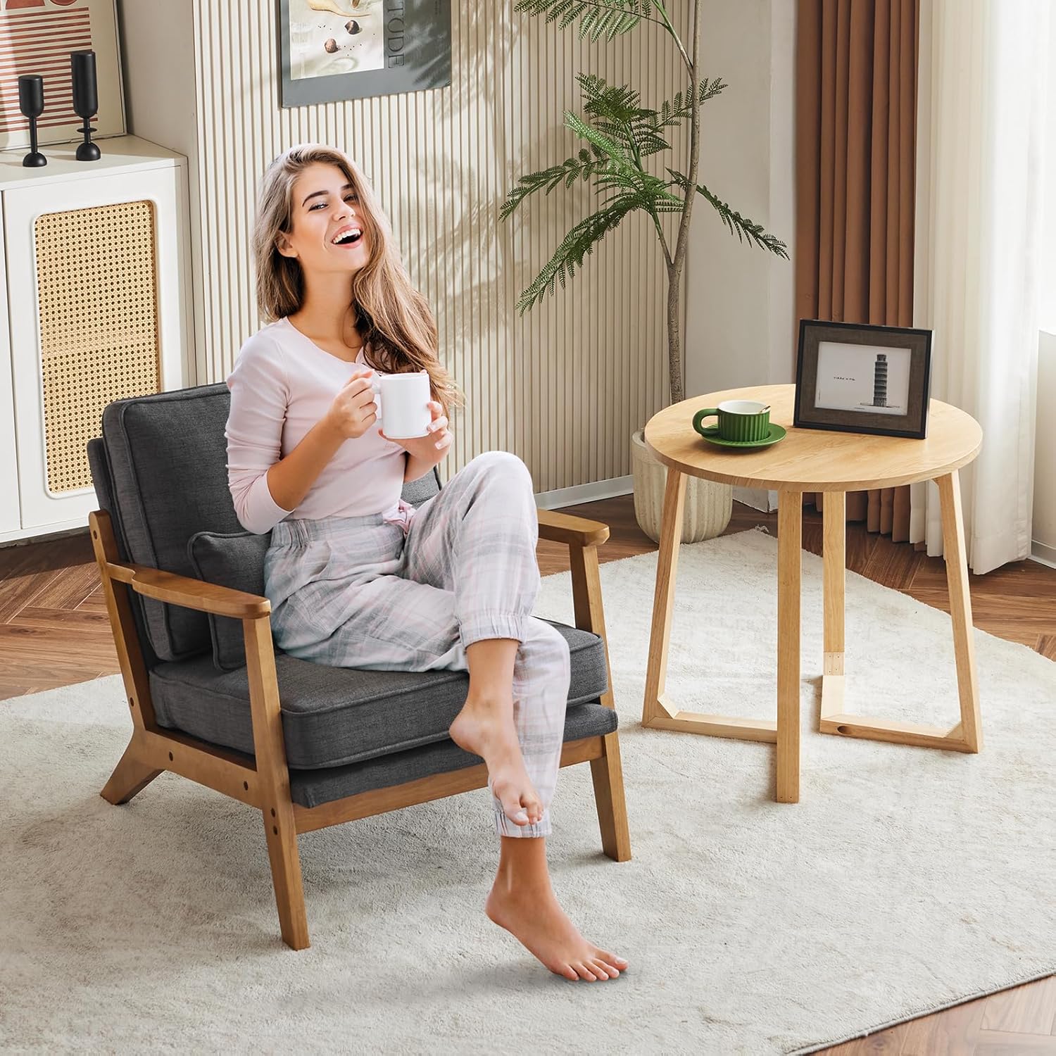 Karl home Accent Chair Wide Armrest Mid-Century Lounge Chair Linen Fabric Armchair with Lumbar Pillow & Solid Wood Frame for Living Room, Bedroom, Balcony, Gray