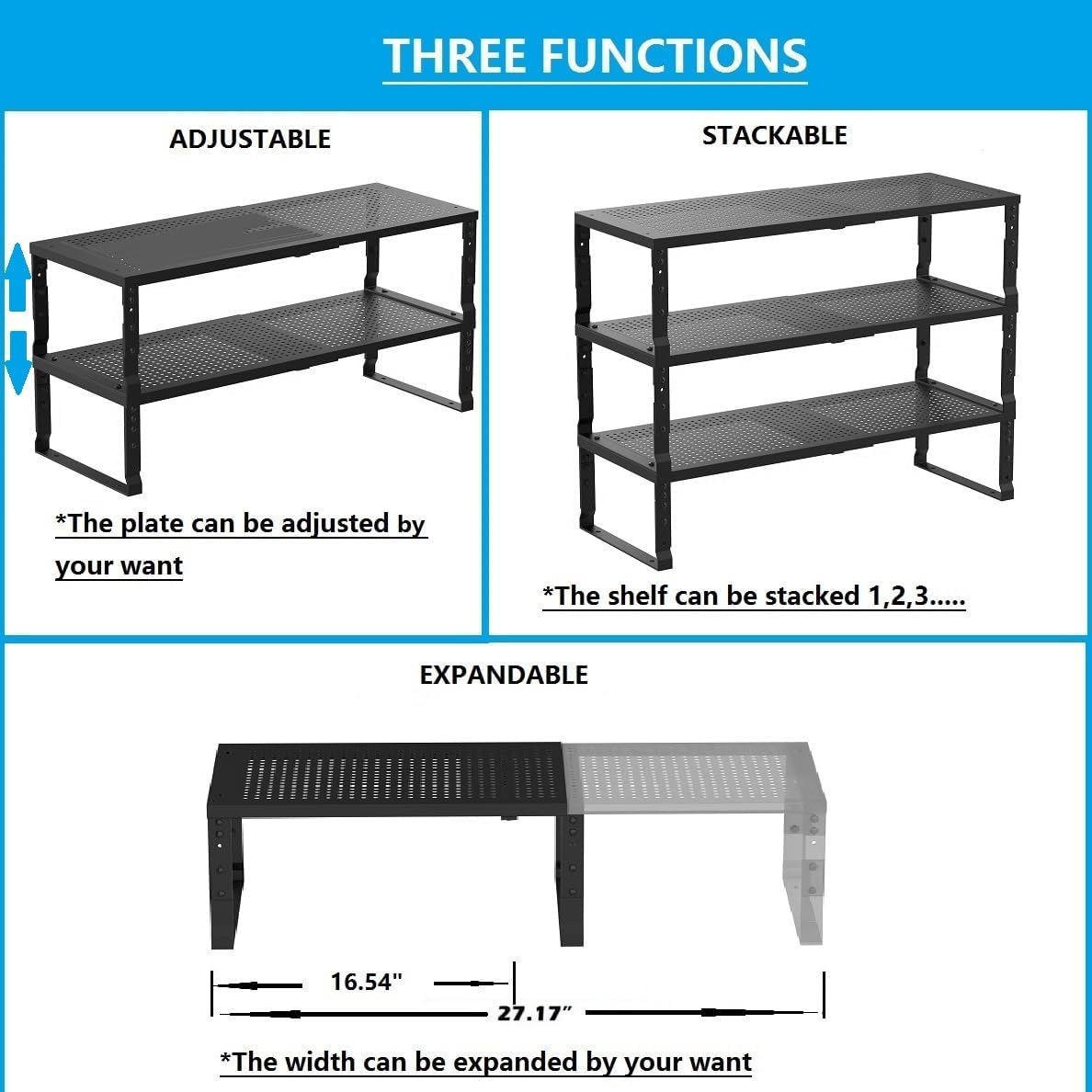 - âăFlexible retractable design (Expandable & Adjustable)ăThis kitchen shelf uses a retractable design, which can be freely adjusted according to the size of the kitchen space and personal needs. Whether it is a narrow corner or a spacious storage room, it can be easily adapted to make the most of every inch of space.(10.1"D x 16.54"W~26.38"W x 6.22"Hďź