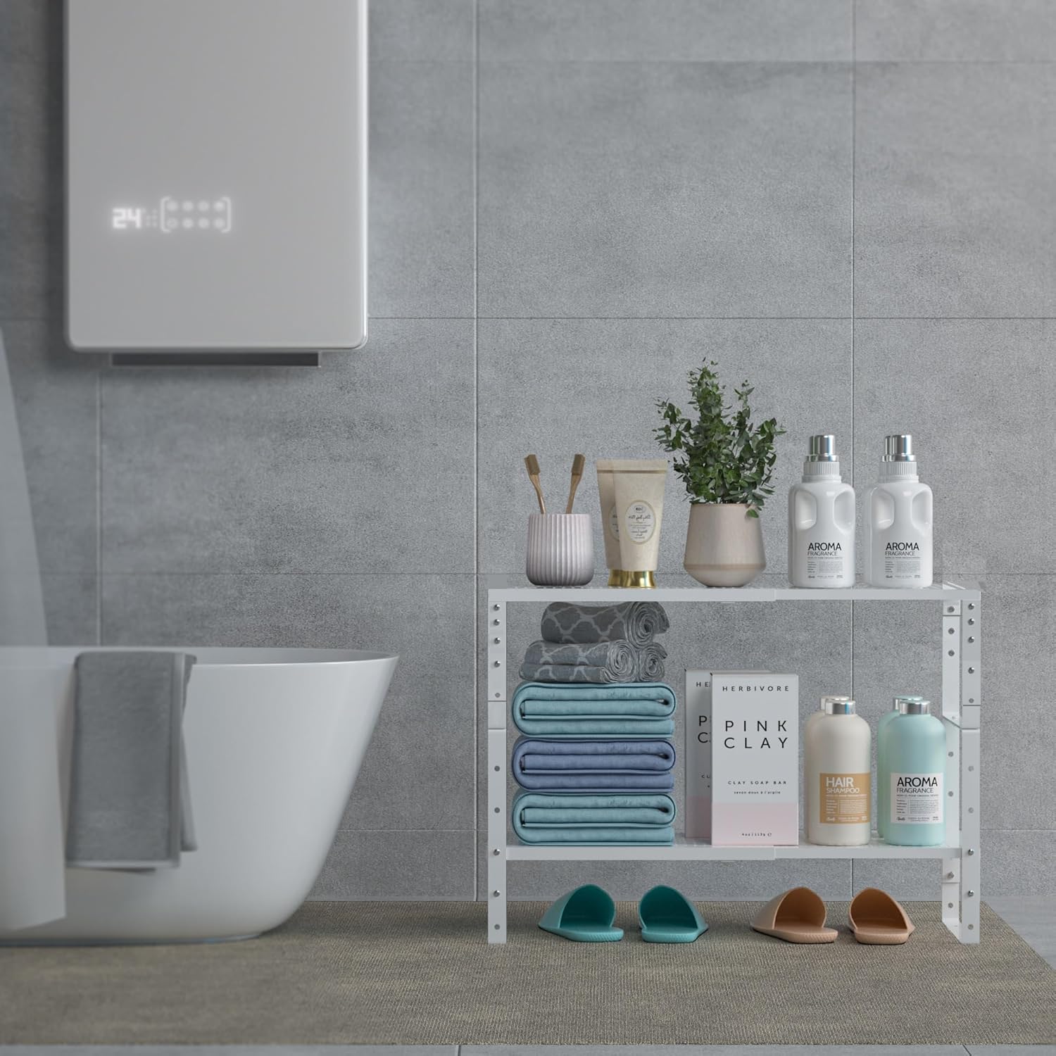 Expandable,Adjustable & Stackable Spice Rack, Cabinet Kitchen Countertop Shelf Organizer,Metal Pantry Storage Shelves - Space-Saving Storage Solution(2Packs/White/Large)