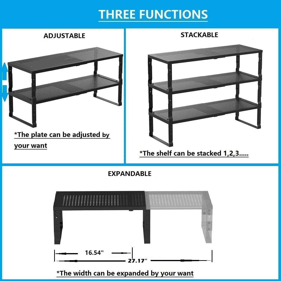 - âăFlexible retractable design (Expandable & Adjustable)ăThis kitchen shelf uses a retractable design, which can be freely adjusted according to the size of the kitchen space and personal needs. Whether it is a narrow corner or a spacious storage room, it can be easily adapted to make the most of every inch of space.(10.1"D x 16.54"W~26.38"W x 6.22"Hďź