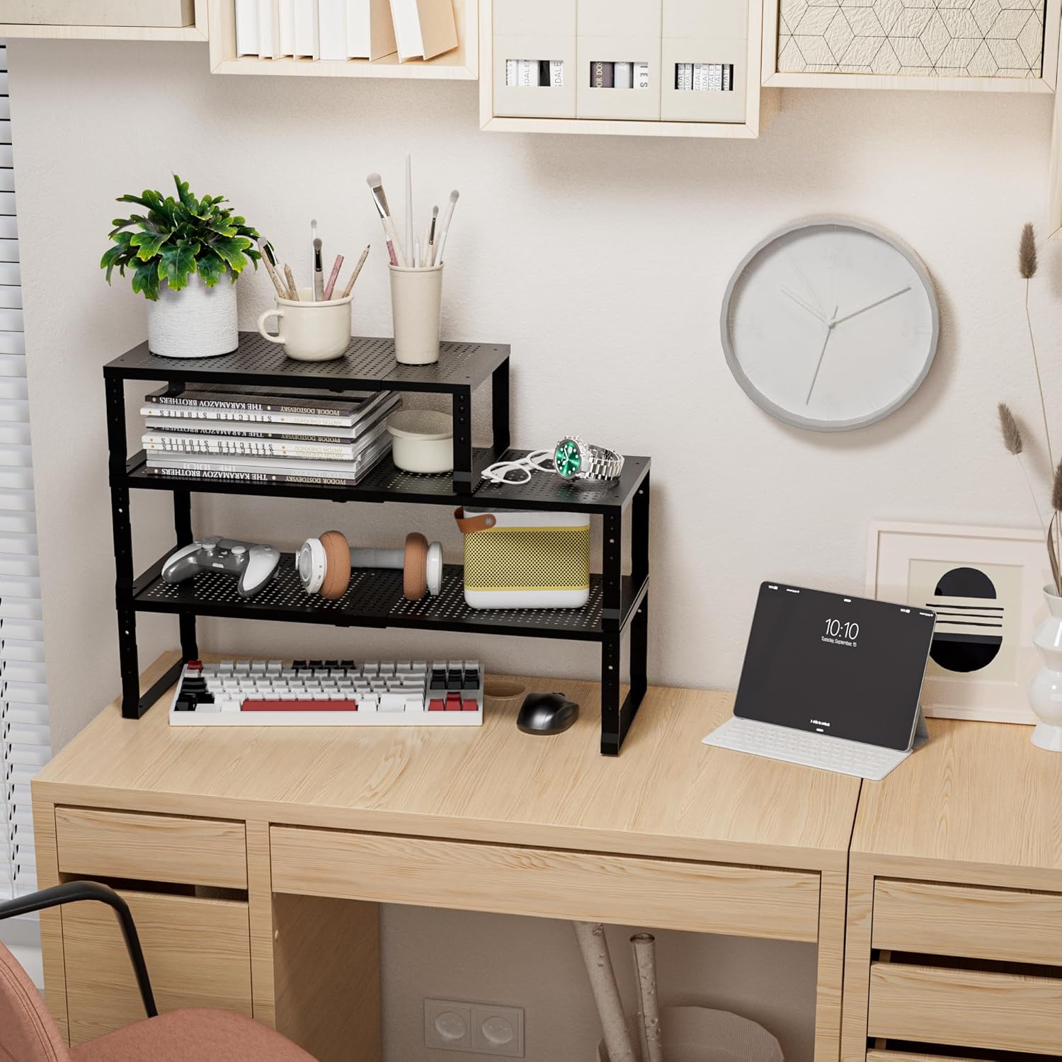- âăStackable structureăThe shelf is made of high-strength materials, stable structure, and can be safely stacked with multiple layers to easily meet your storage needs. The spacing between each floor is reasonable, convenient to place different sizes of kitchen supplies, so that your kitchen is more tidy and orderly.