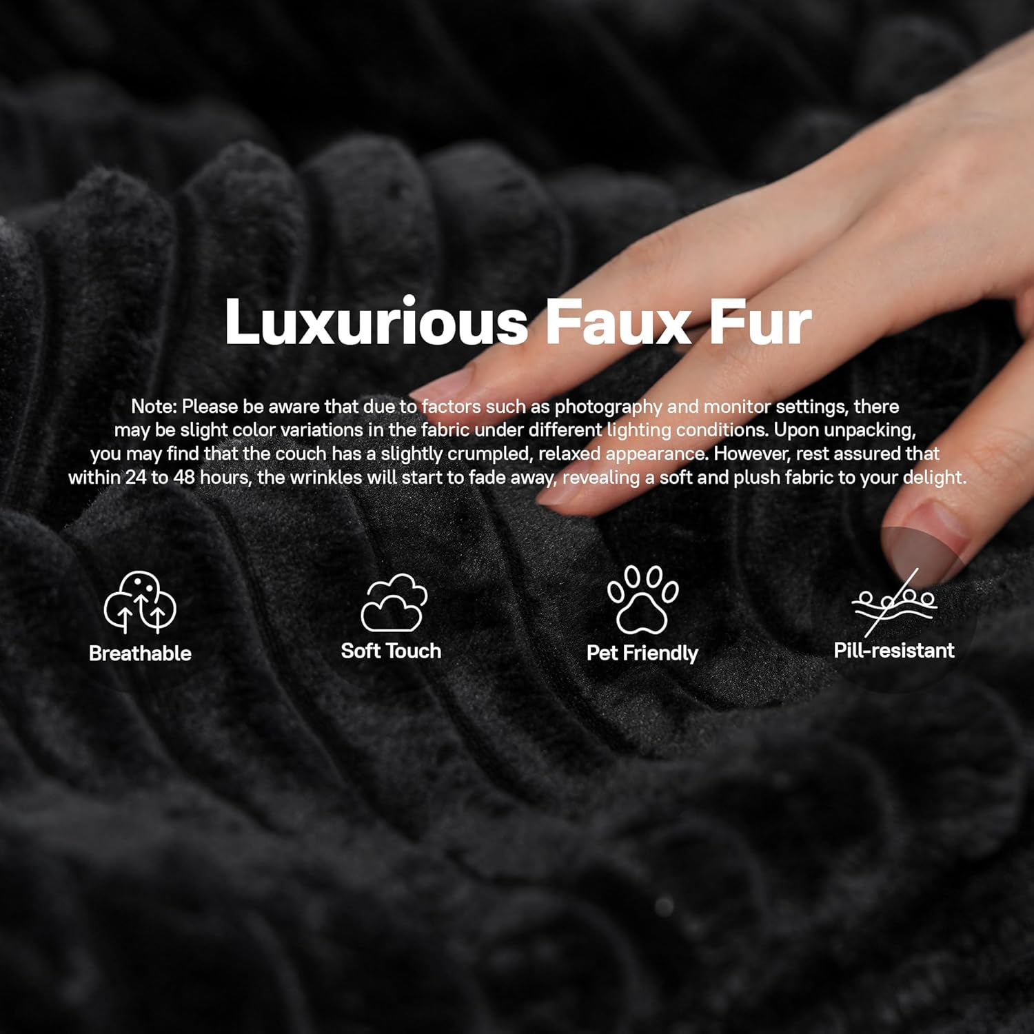 104" Cloudy Sectional L Shaped Couch for Living Room, No Assembly Required, Modular Comfy Sofa with Deep Seat, Fluffy Couch with Sleeper Chaise for Apartment Lounge (Black)