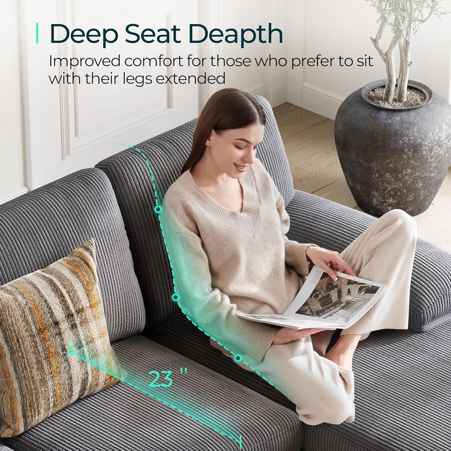 - ăLuxurious Corduroy Fabrică - Upholstered in premium corduroy fabric, this large reversible couch combines elegance with comfort. The soft, textured fabric enhances the overall aesthetic of your living room while ensuring durability and resistance to wear and tear