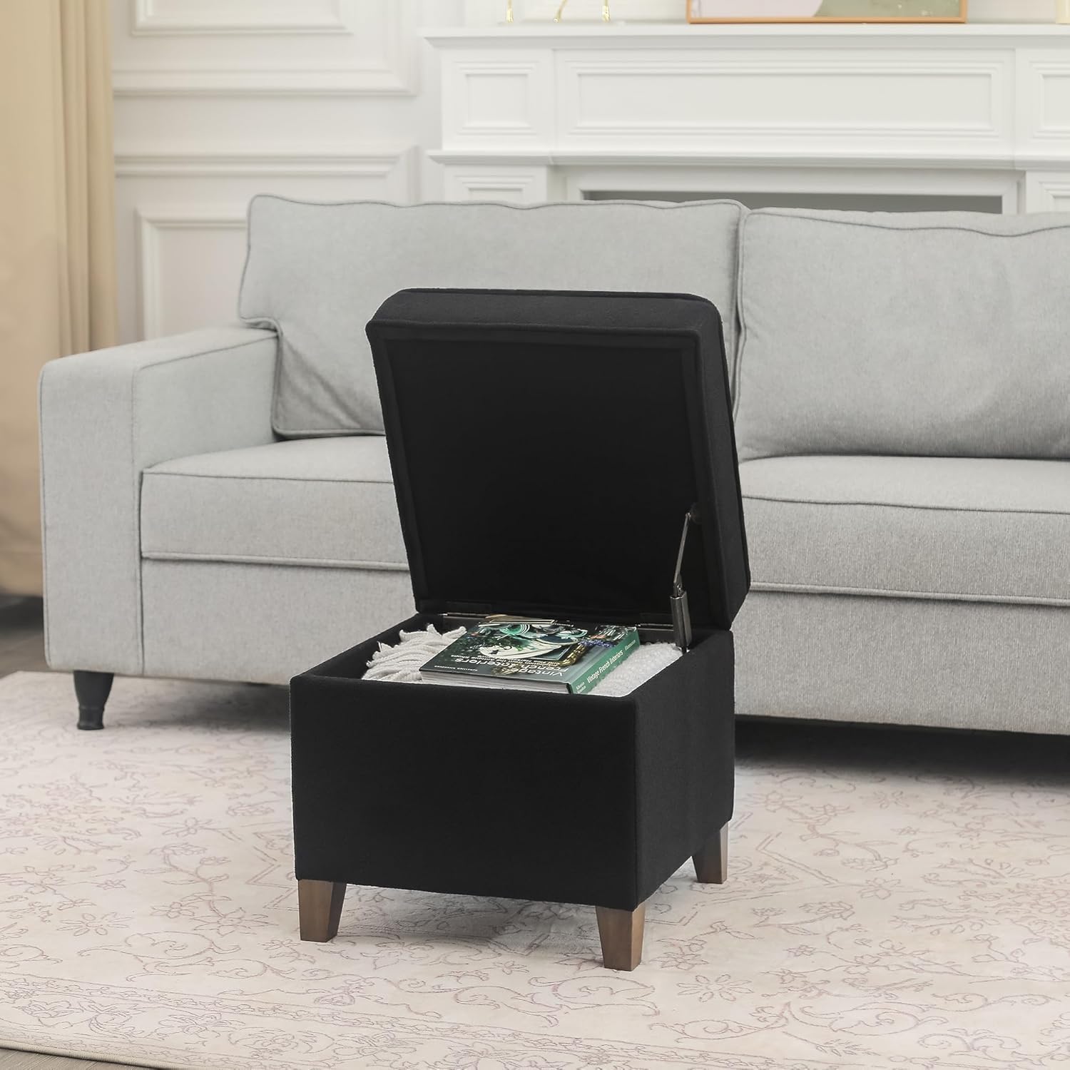 - Small Ottoman Footrest with Storage - Perfect square storage ottoman allows you to organize your small household items, store extra pillows, blankets and books in your bedroom or family room. Great height and width to complement a sitting chair, desk or the sofa couch, super comfortable with thick upholstery on the top, also great gift ideas for your family members or friends.