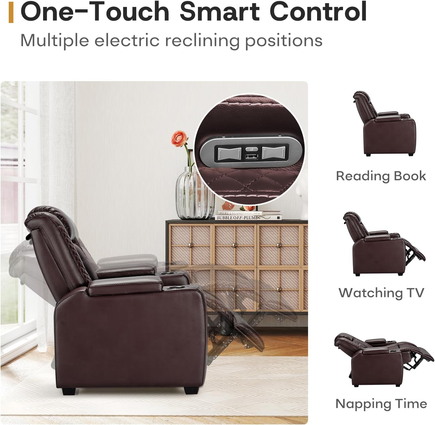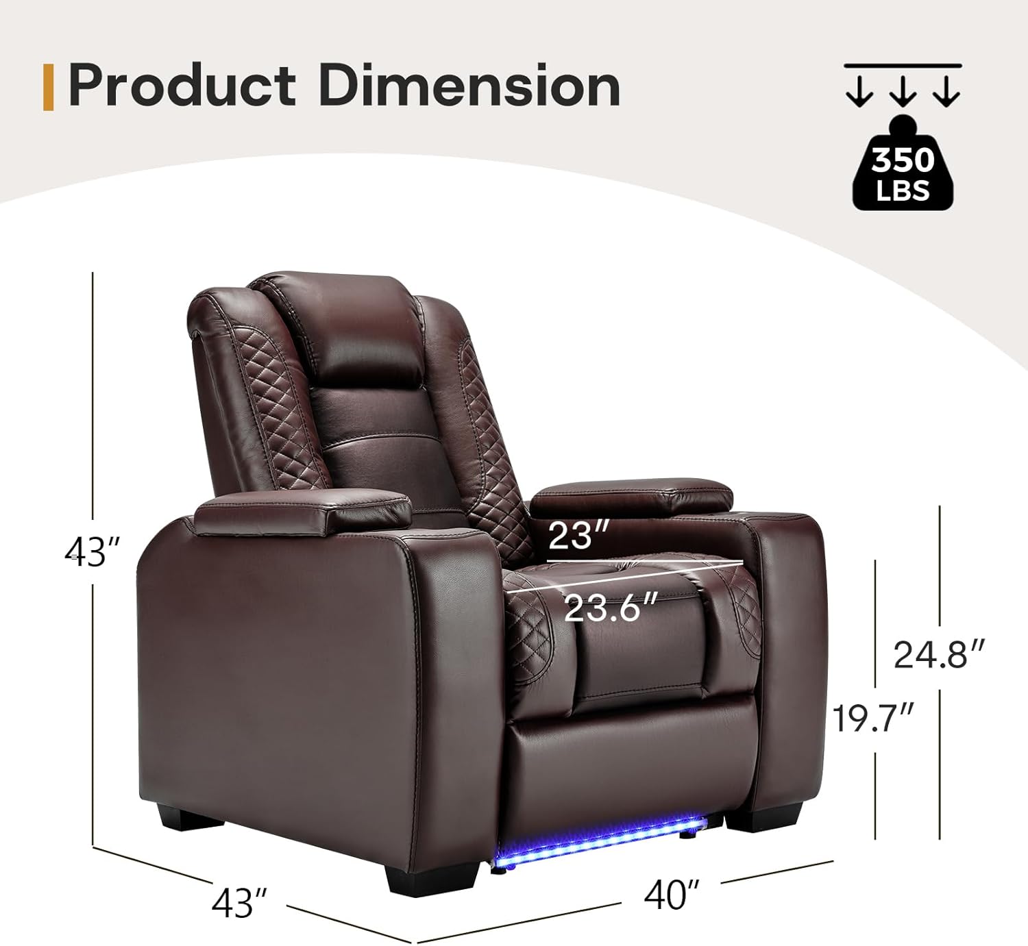 ANJ Power Home Theater Seating Set of 2, Brown Faux Leather Electric Recliner Chair with Powered Headrest, Dual Motors Movie Reclining Chairs with LED Lights,USB Port,Cup Holders, Hidden Arm Storage