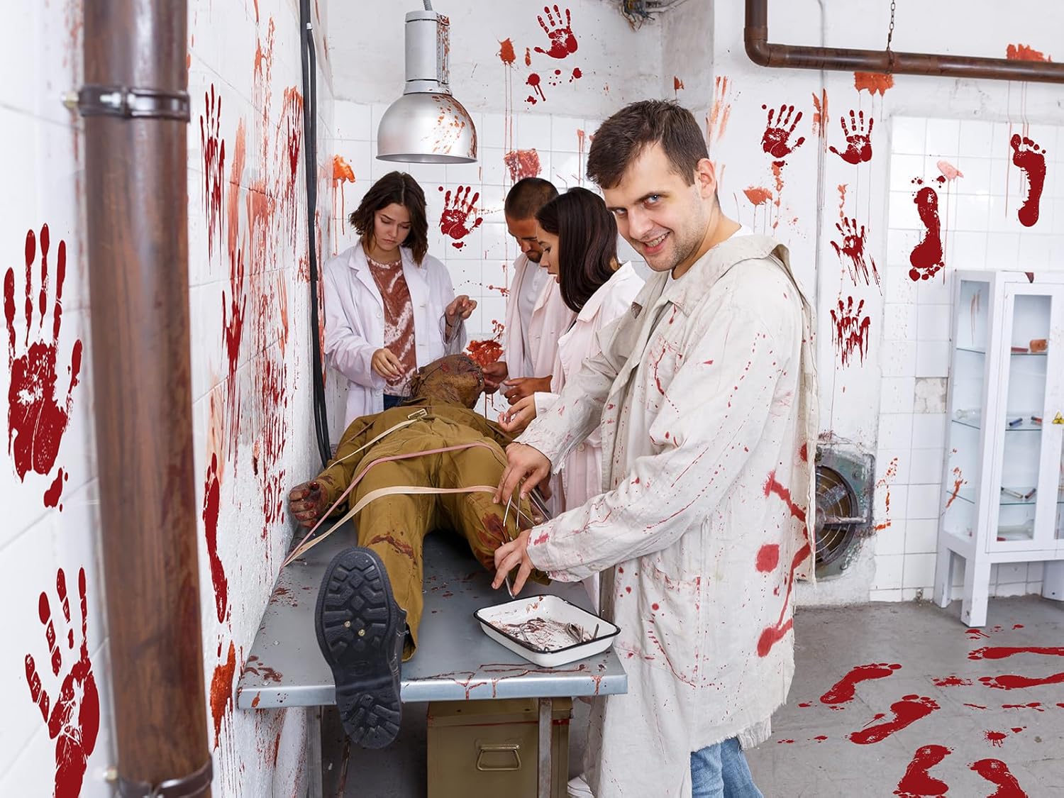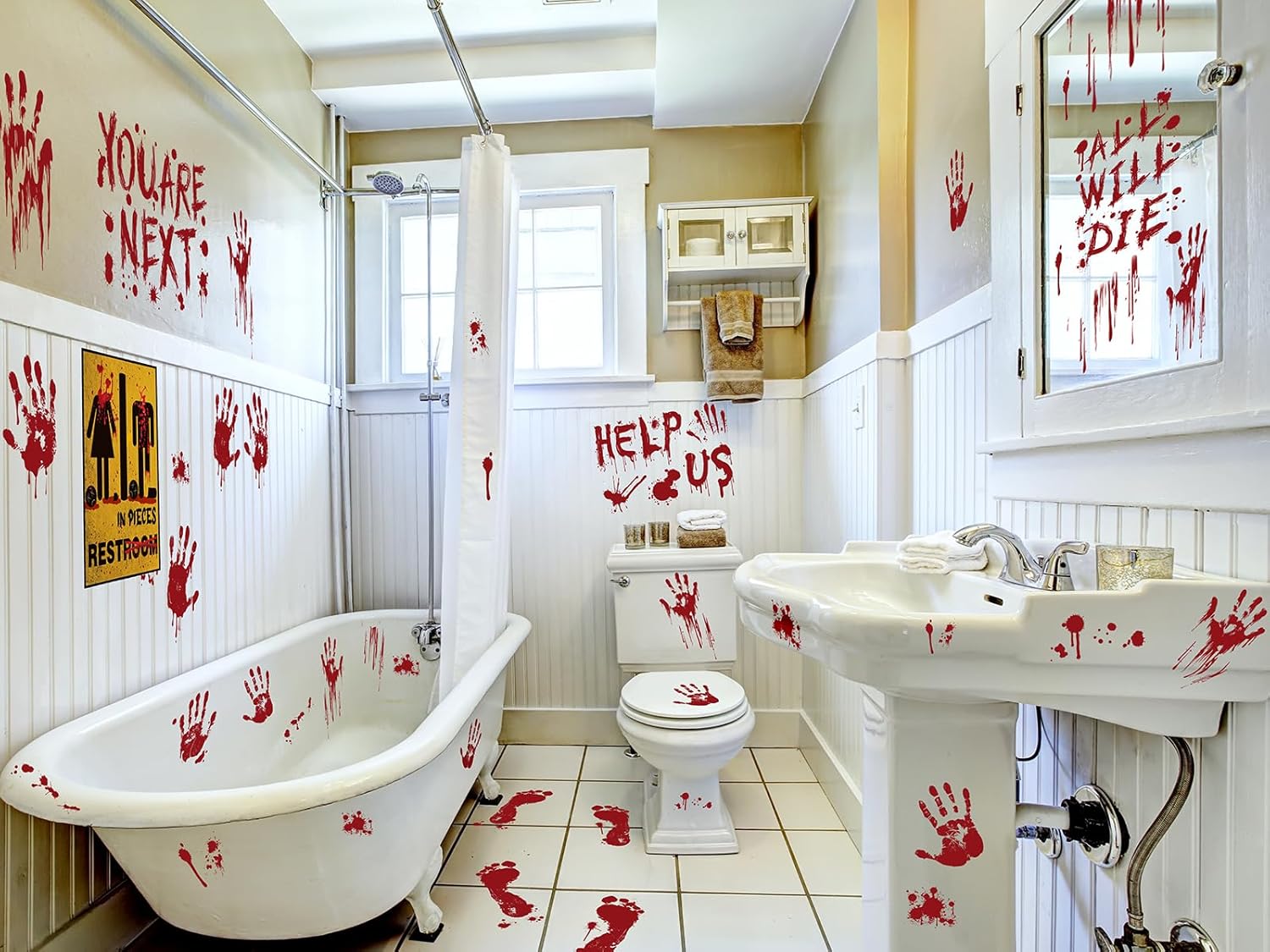 - The Perfect Spooky Party Decoration:On a dark Halloween night, these bloody decals create a scene straight out of a horror movie. The smeared bloody handprints and "Help Us" signs on your windows make your home look like the site of a terrifying event. Neighbors passing by or friends dropping in will be captivated by these realistic blood stains, thinking theyâve stumbled upon a chilling scene! Imagine the look of shock on their facesâthat's the mark of a successful Halloween party!
