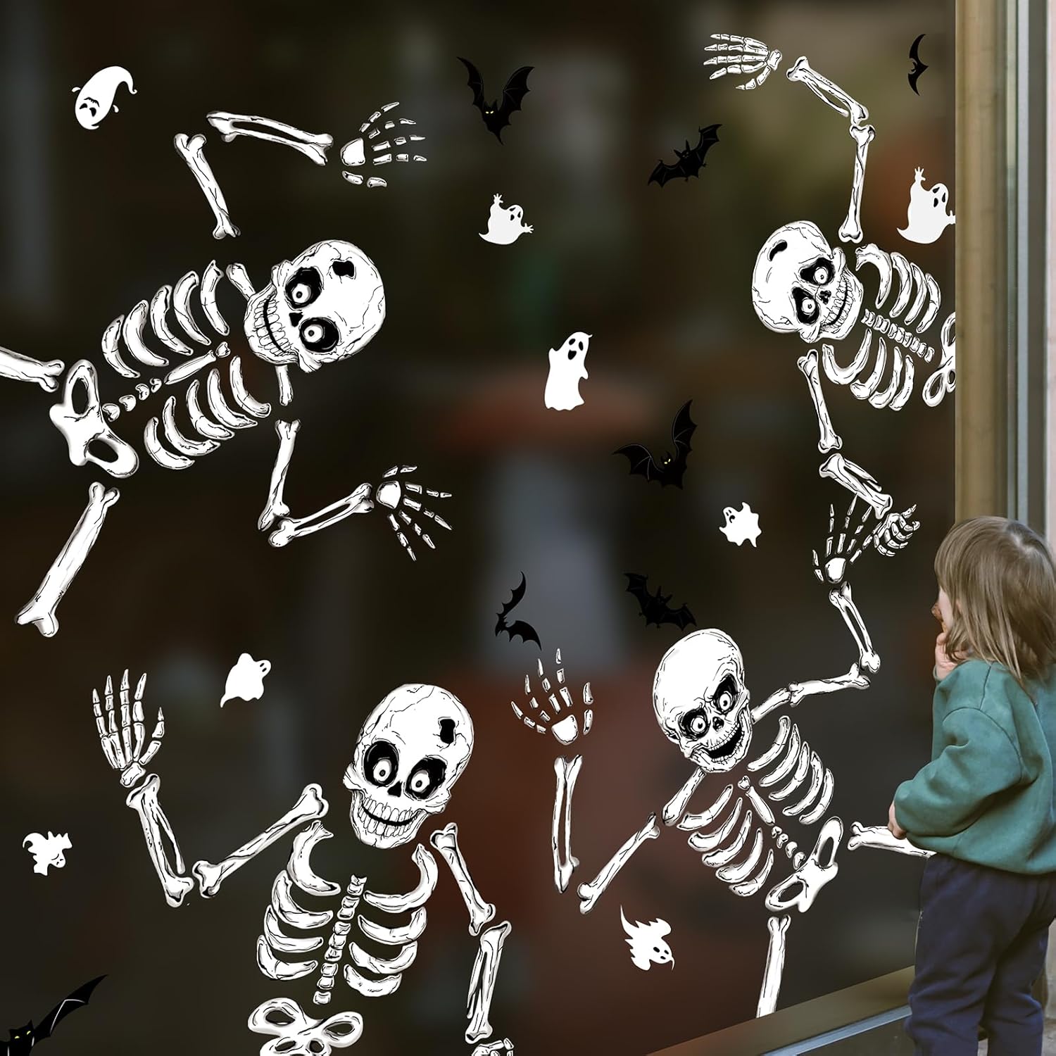 - HALLOWEEN WINDOW STICKERS: Set includes 8 sheets of creative Halloween window stickers featuring adorable bats, ghosts and skeletons. Decorate your windows and mirrors with these charming stickers to instantly bring a festive and joyful atmosphere to your home and add Halloween fun.