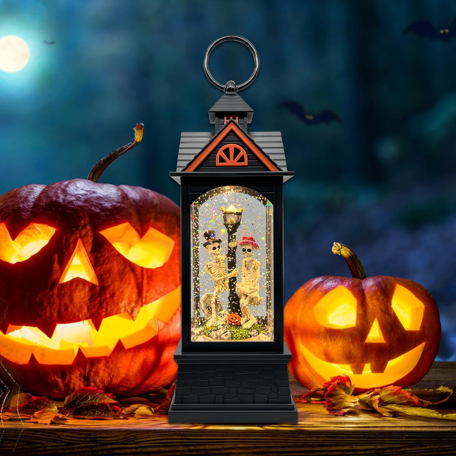 - Halloween Lantern: Bottom switch (On/Off/Timer). In Timer mode, the snow globe lantern will light up for 6 hours, turn off for 18 hours, and automatically light up again at the same time the next day — a 24-hour cycle