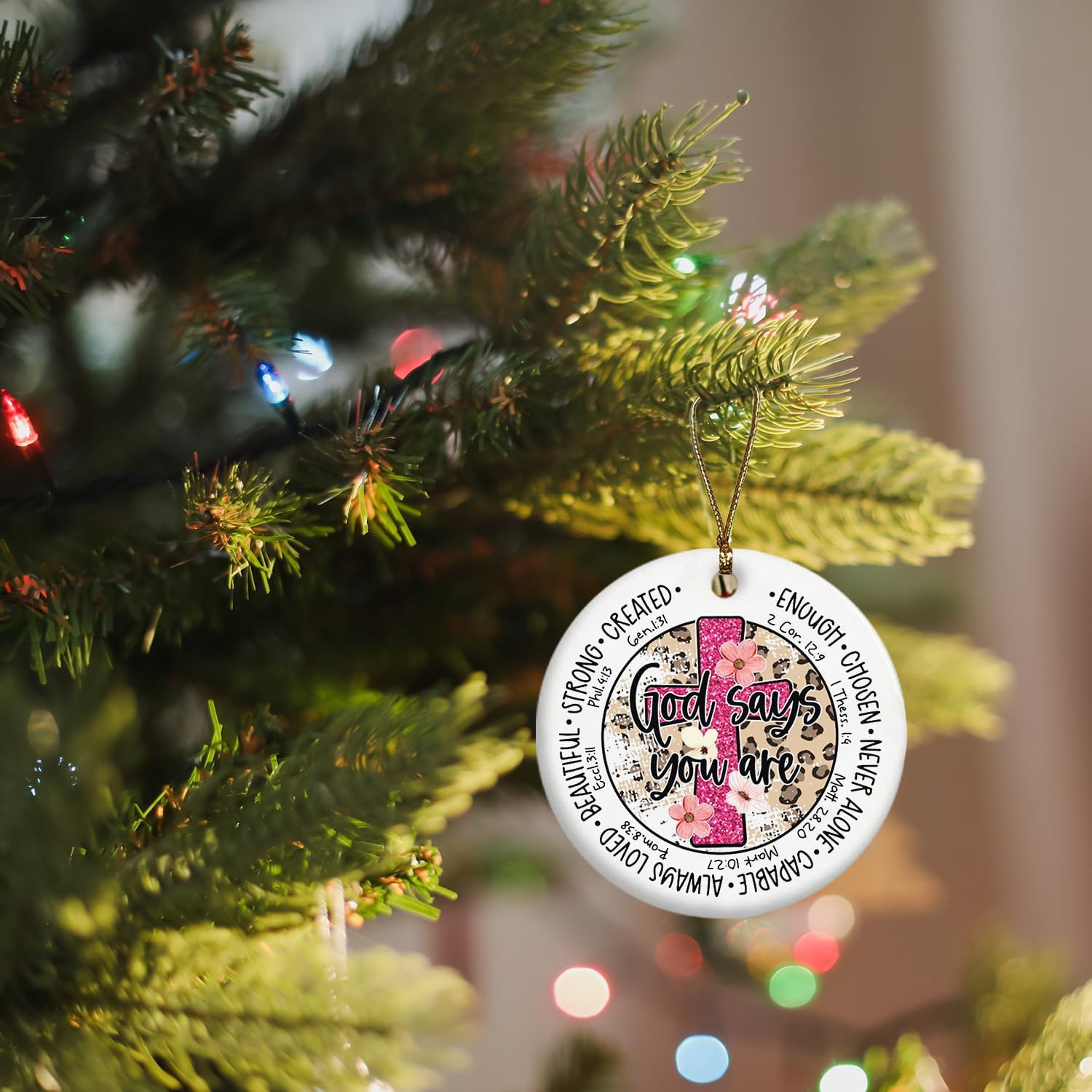 Christian Ornaments, God Says You are Scripture Floral Ceramic Ornament Keepsake Decorations, Inspirational Christian Gifts for Women Teen Girls