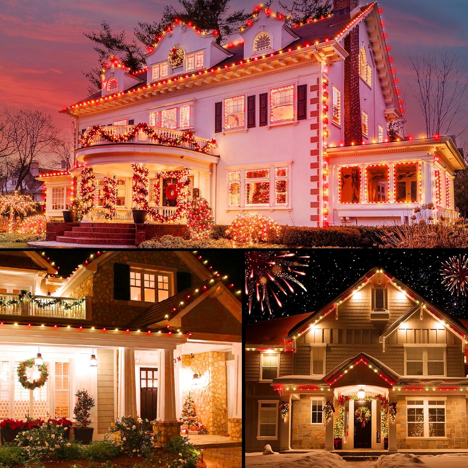 - End-to-End Connectable: Each Christmas light has an end-to-end connector, and you can connect up to 100 sets of these strings end-to-end, freely connecting according to your needs. Hang these fairy lights from your roof, porch, or fence, or wrap them around trees to create a romantic holiday atmosphere and enjoy a happy holiday season with your family.