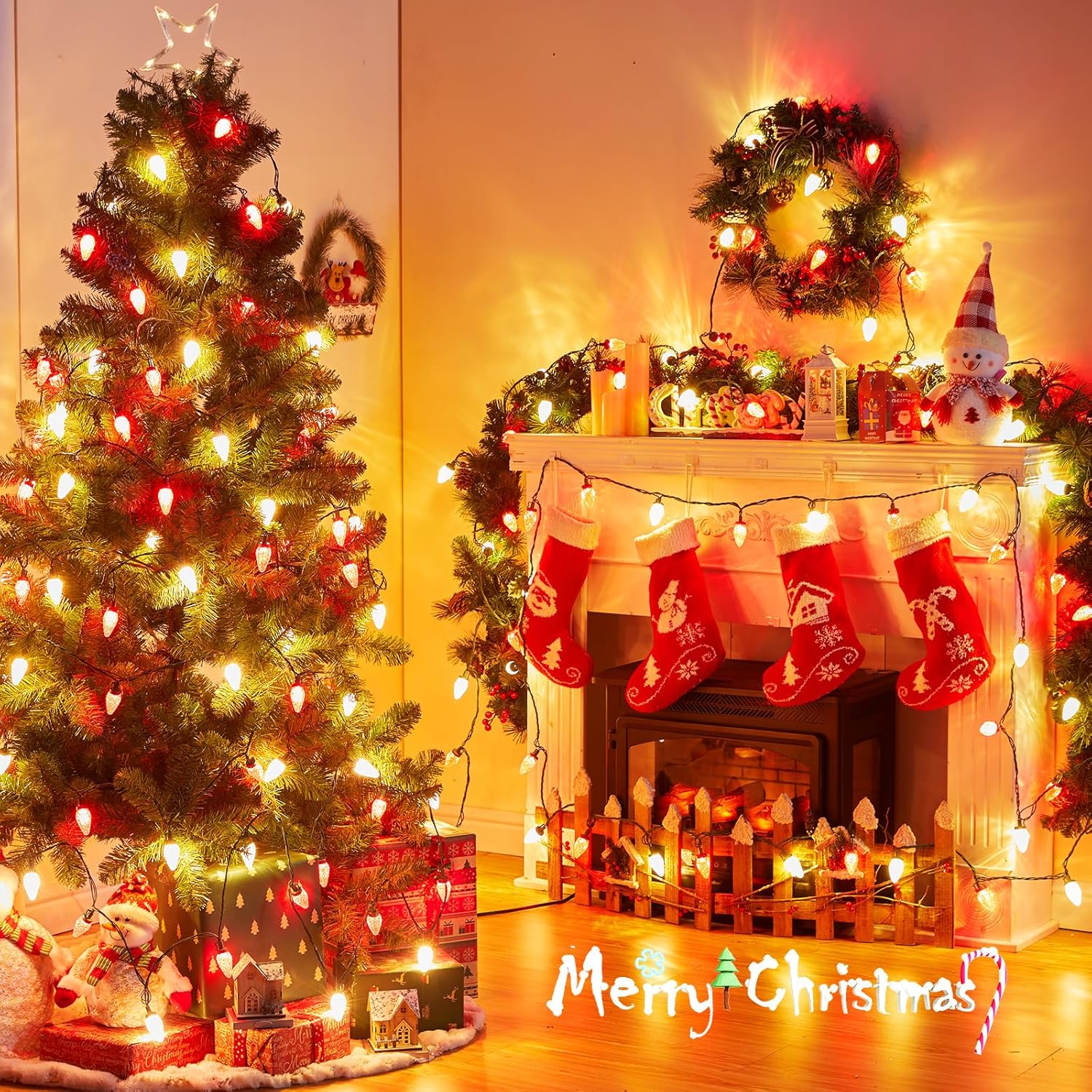 - Perfect Christmas Decorations: The exquisite C9 Christmas tree lights is suitable for outdoor, indoor, Xmas, holiday decorations, garden, yard, lawn, home, patio, bedroom, Christmas tree, wedding, thanksgiving day, and Holiday decoration. Hang these versatile lights anywhere with built-in clips and hooks on each bulb socket.
