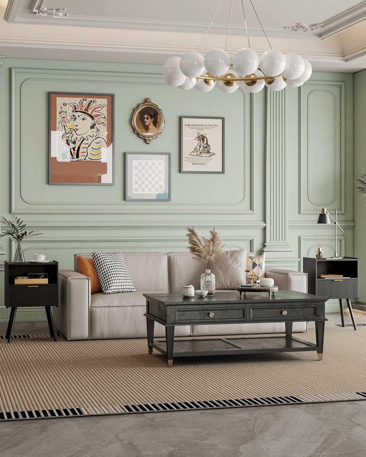Nightstand,Modern Bedside Table with Storage Drawer and Open Wood Shelf, Accent Night Stand with Solid Wood Legs for Living Room, Bedroom and Small Spaces,Easy Assembly (Black)